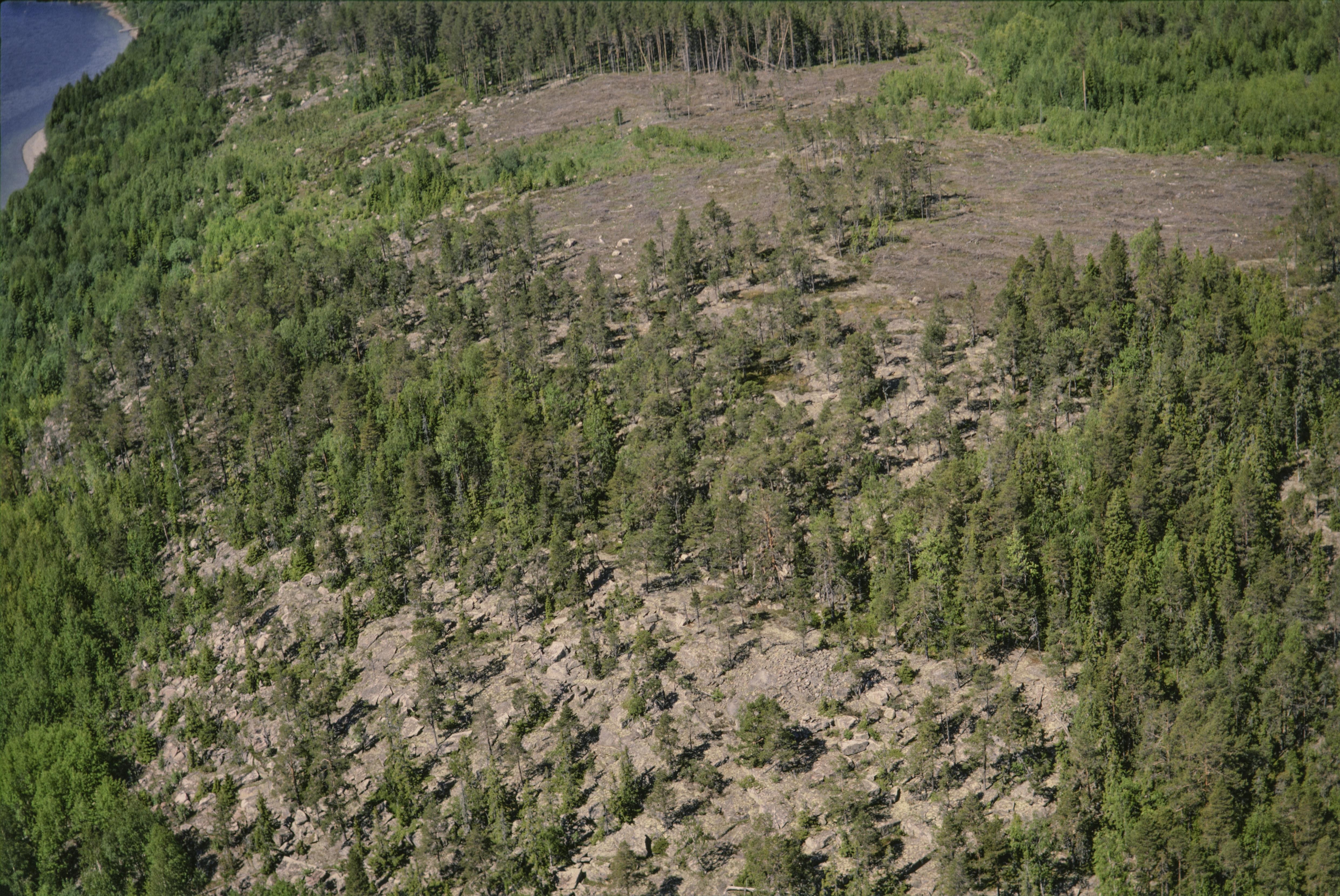 Beskrivning: Höga kusten. Valsvedjeberget på Värnsudden. Vid bildens mitt gravfält RAÄnr Vibyggerå 16:1 söder om byn Värns. Ullångersfjärden skymtas uppe till vänster. Bilden är tagen mot (väderstreck): VNV
