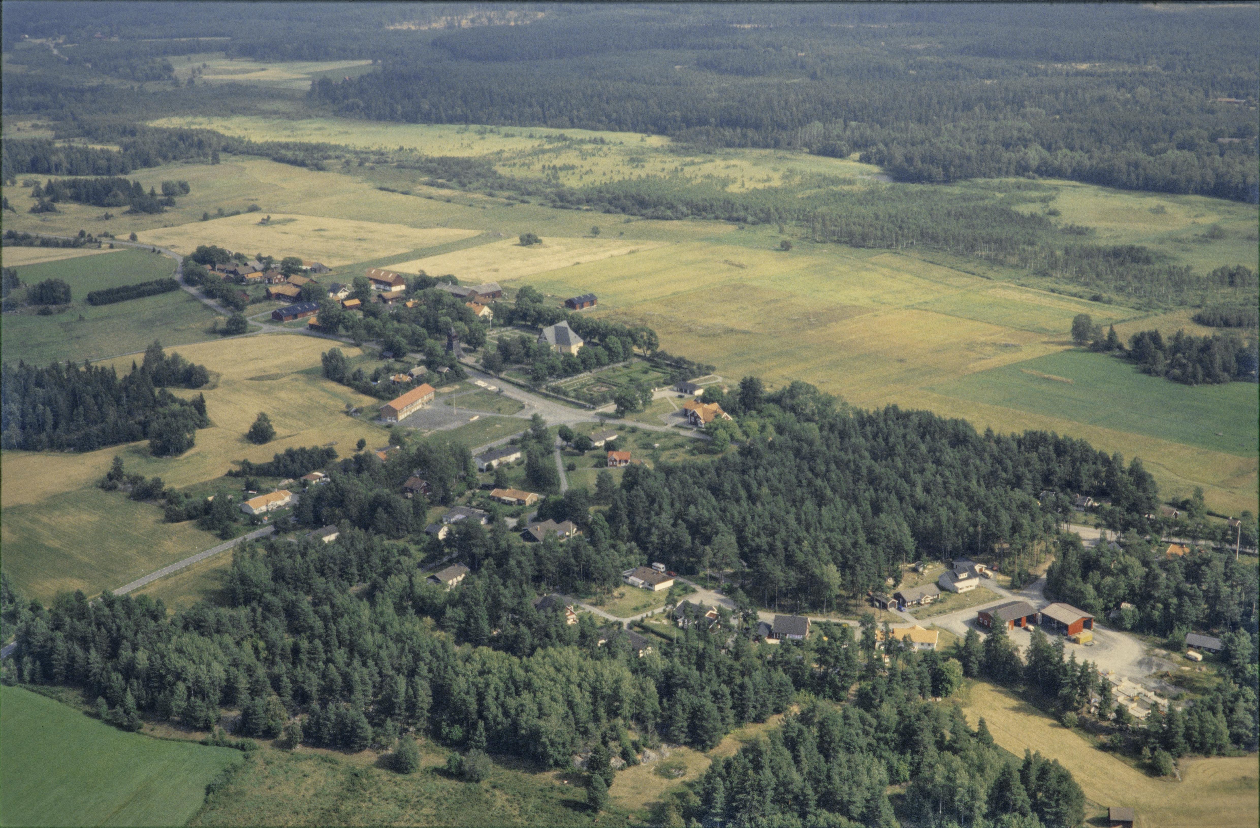Beskrivning: Films kyrka och kyrkby i Broåns dalgång. Vid kyrkan bytomt RAÄnr Film 254:1 m.fl. Bilden är tagen mot (väderstreck): ONO