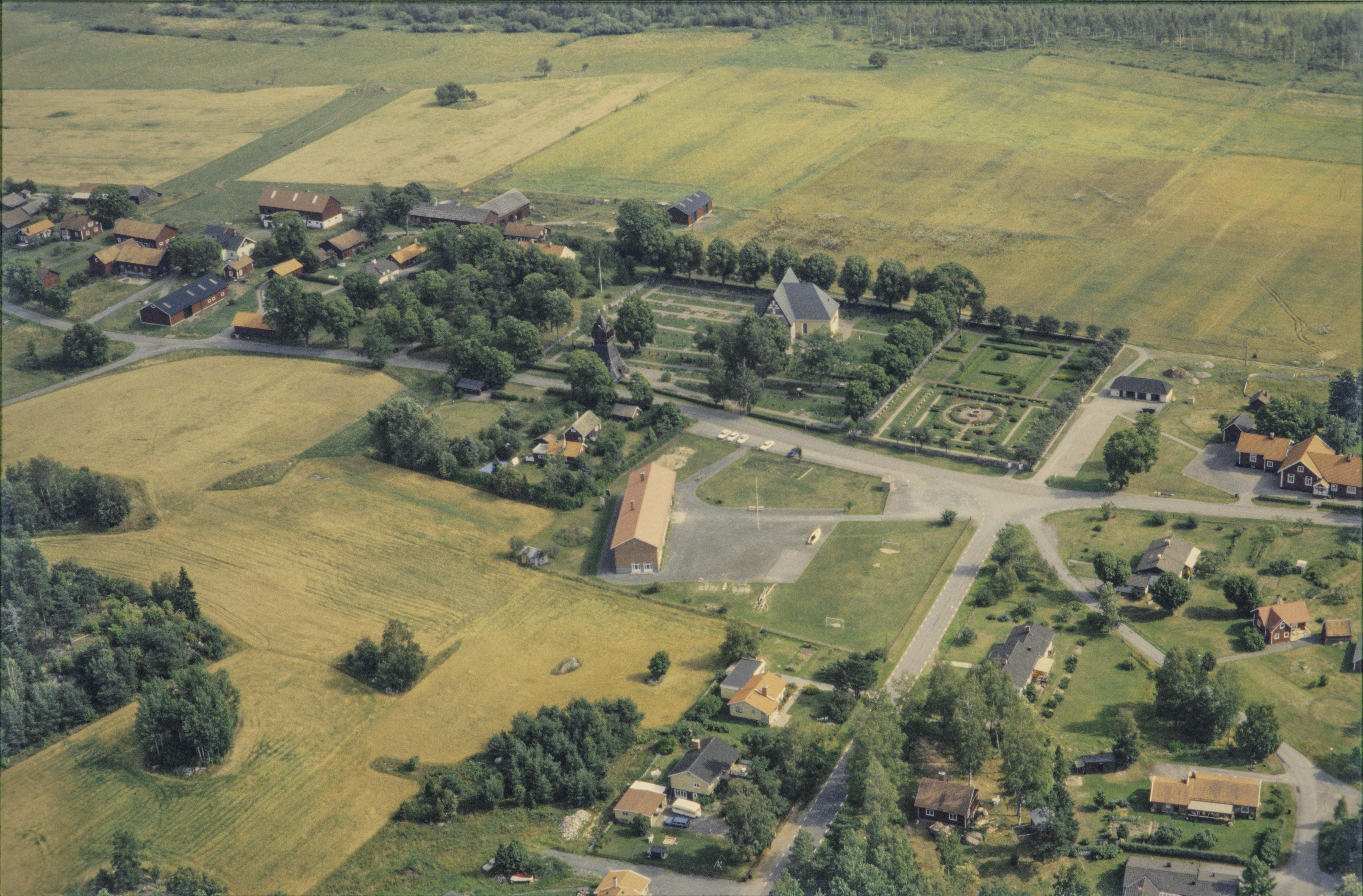 Beskrivning: Films kyrka och kyrkby i Broåns dalgång. Till vänster om kyrkan bytomt RAÄnr Film 254:1. Bilden är tagen mot (väderstreck): Ö