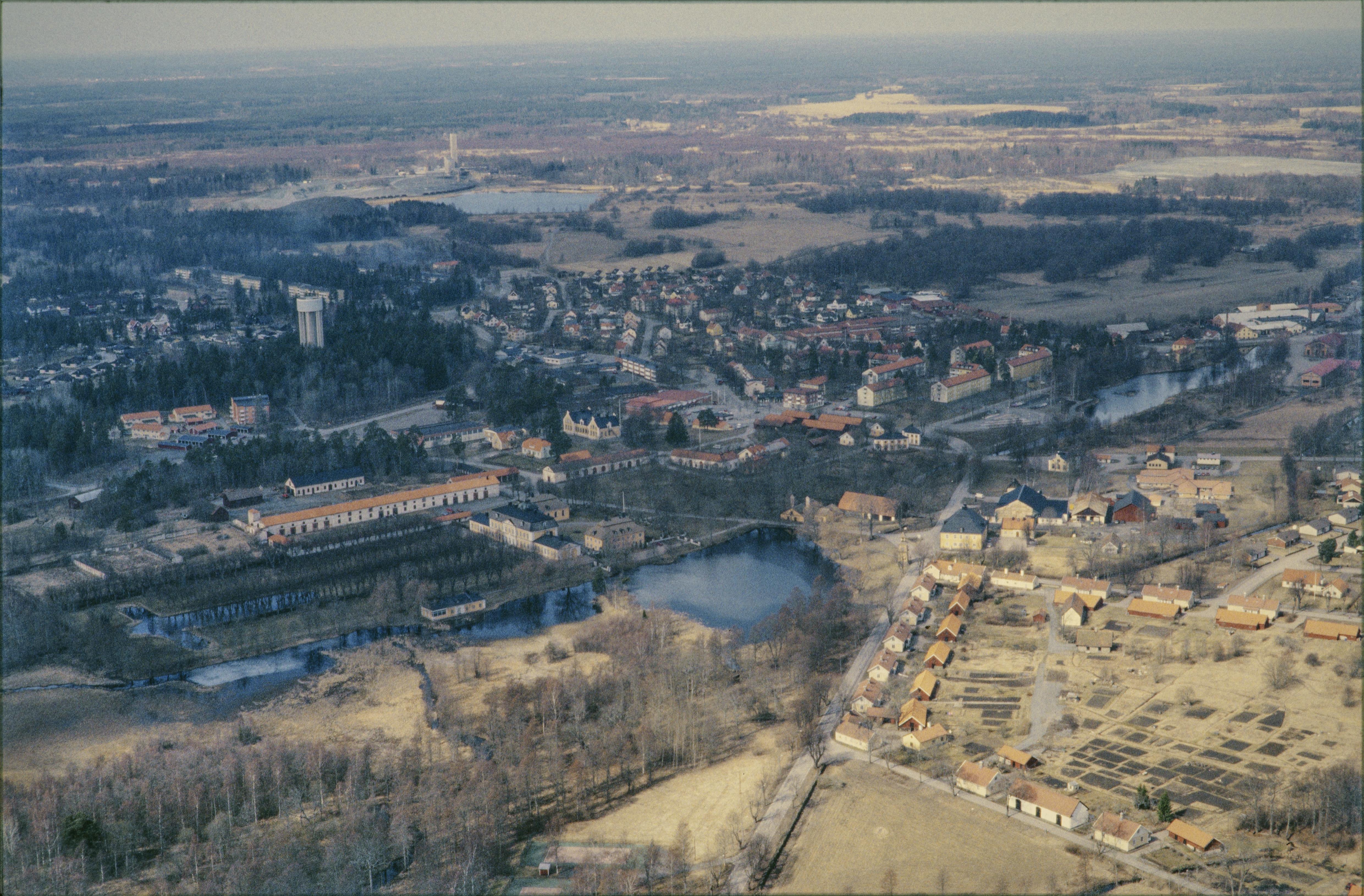 Beskrivning: Österbybruk vid Nerån och sjöarna Stordammen, Oppdammen, Sågdammen och Herrgårdsdammen. Bruksområde med herrgård och kyrka samt smedje-, kvarn-, hammar- och hyttlämningar m.m. RAÄnr Film 81:1. Bilden är tagen mot (väderstreck): NV