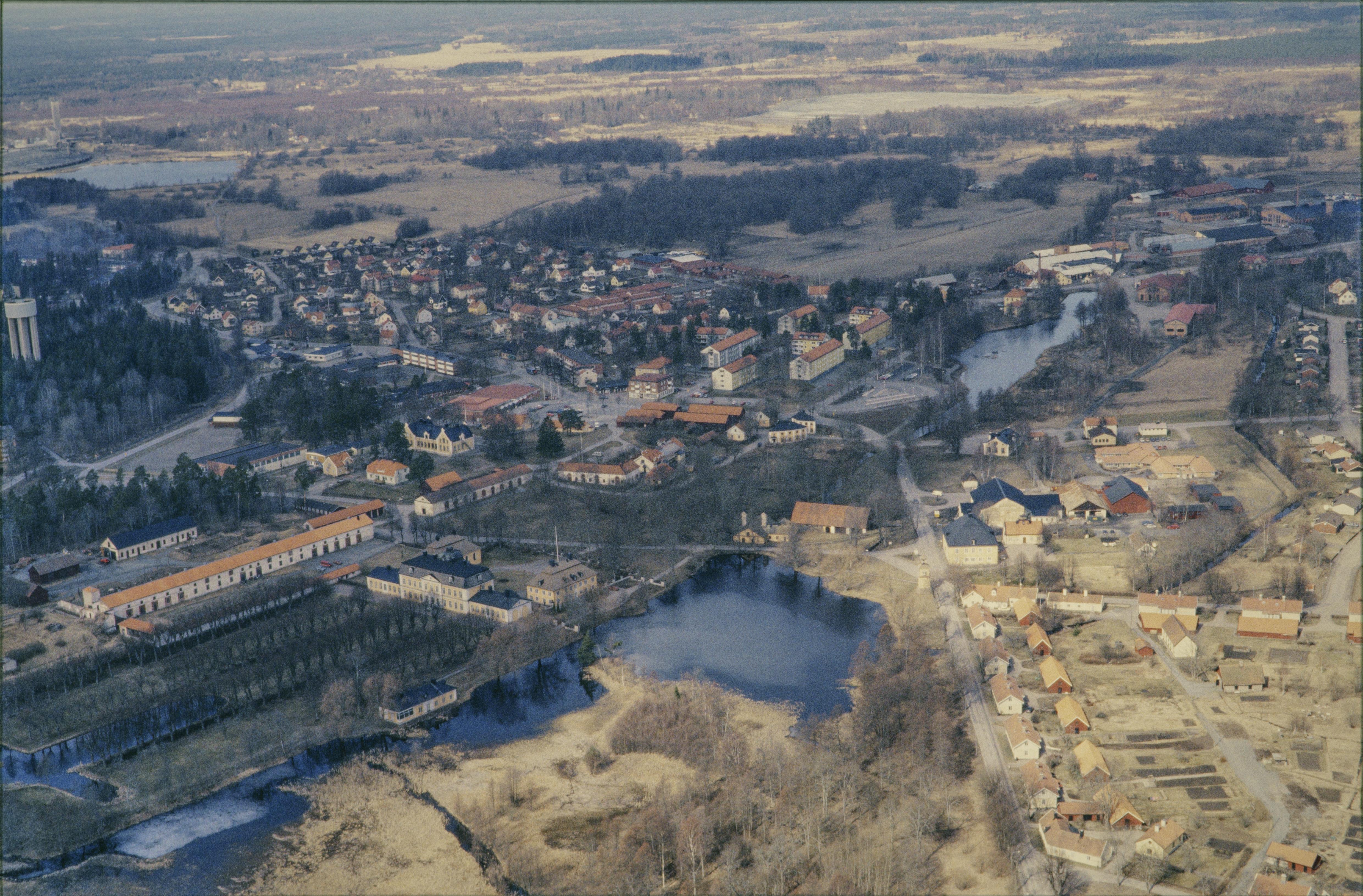 Beskrivning: Österbybruk vid Nerån och sjöarna Stordammen, Oppdammen, Sågdammen och Herrgårdsdammen. Bruksområde med herrgård och kyrka samt smedje-, kvarn-, hammar- och hyttlämningar m.m. RAÄnr Film 81:1. Bilden är tagen mot (väderstreck): NV