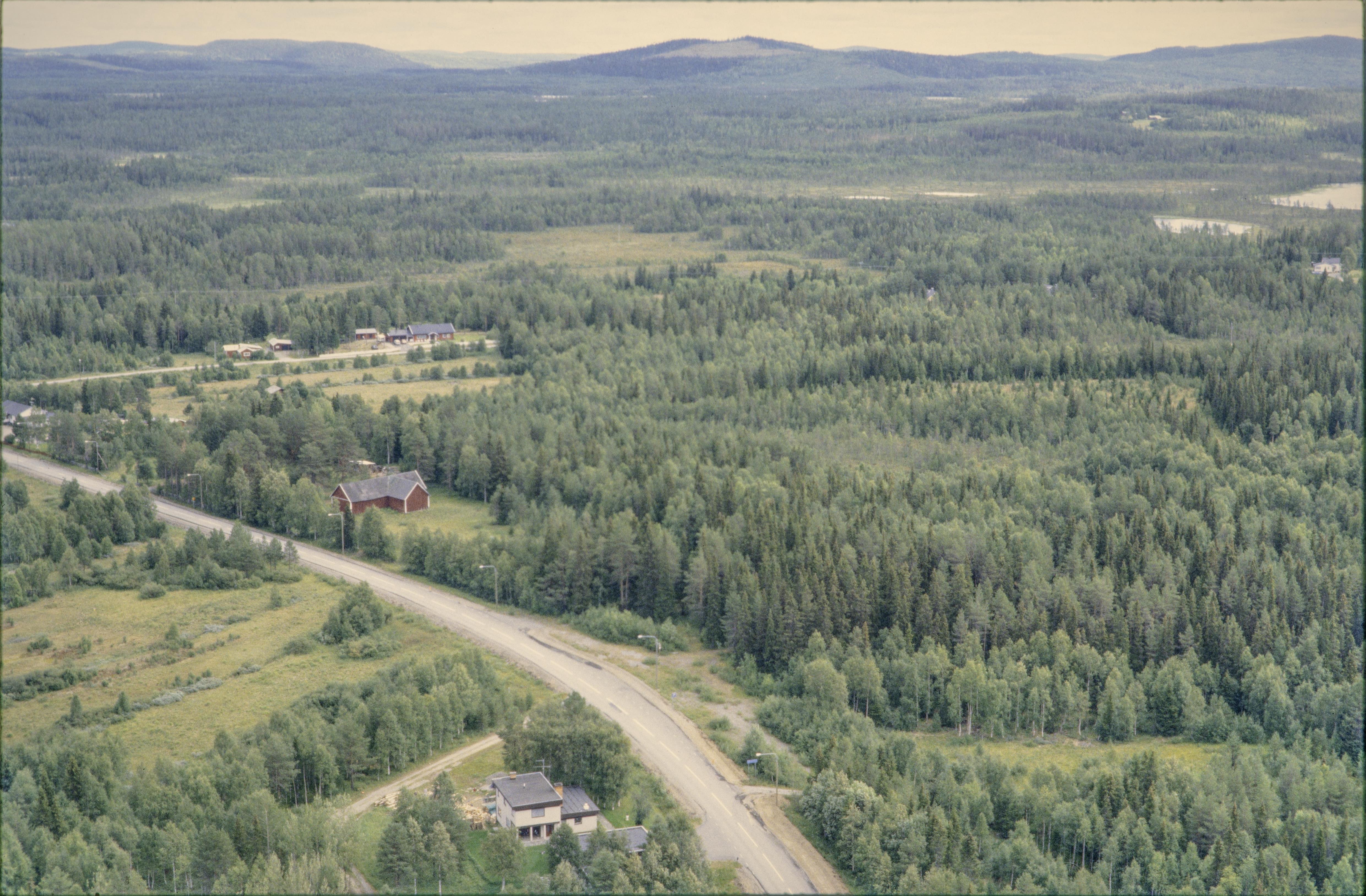 Beskrivning: Bäsksele by (Beetske) i Vojmåns dalgång. I bildens nedre del områdena vid vägkorsningen nordöst om bron. Bilden är tagen mot (väderstreck): Ö