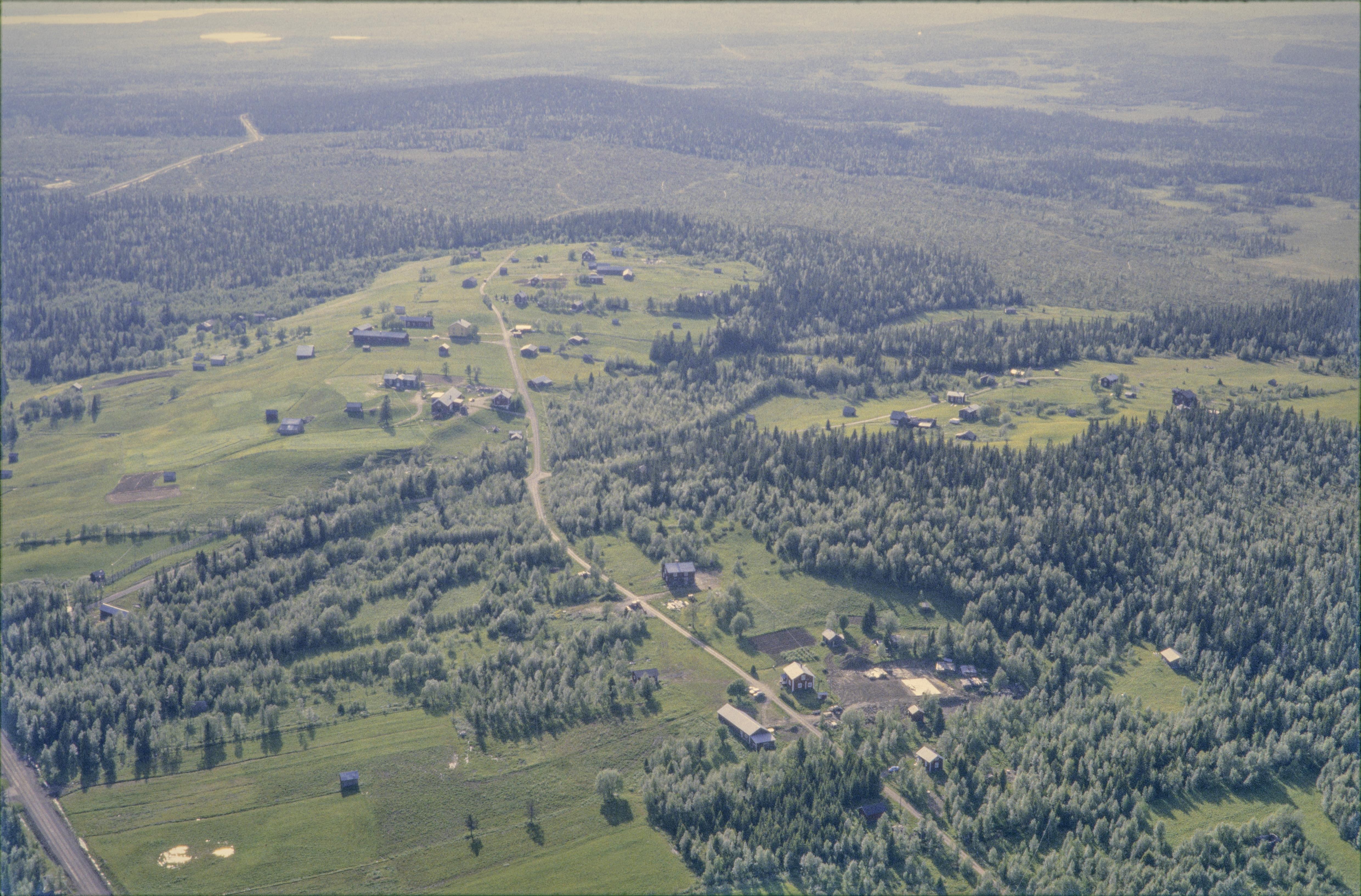 Beskrivning: Risträsks by. Risträskskogens naturreservat till höger om bildens mitt. Bilden är tagen mot (väderstreck): V