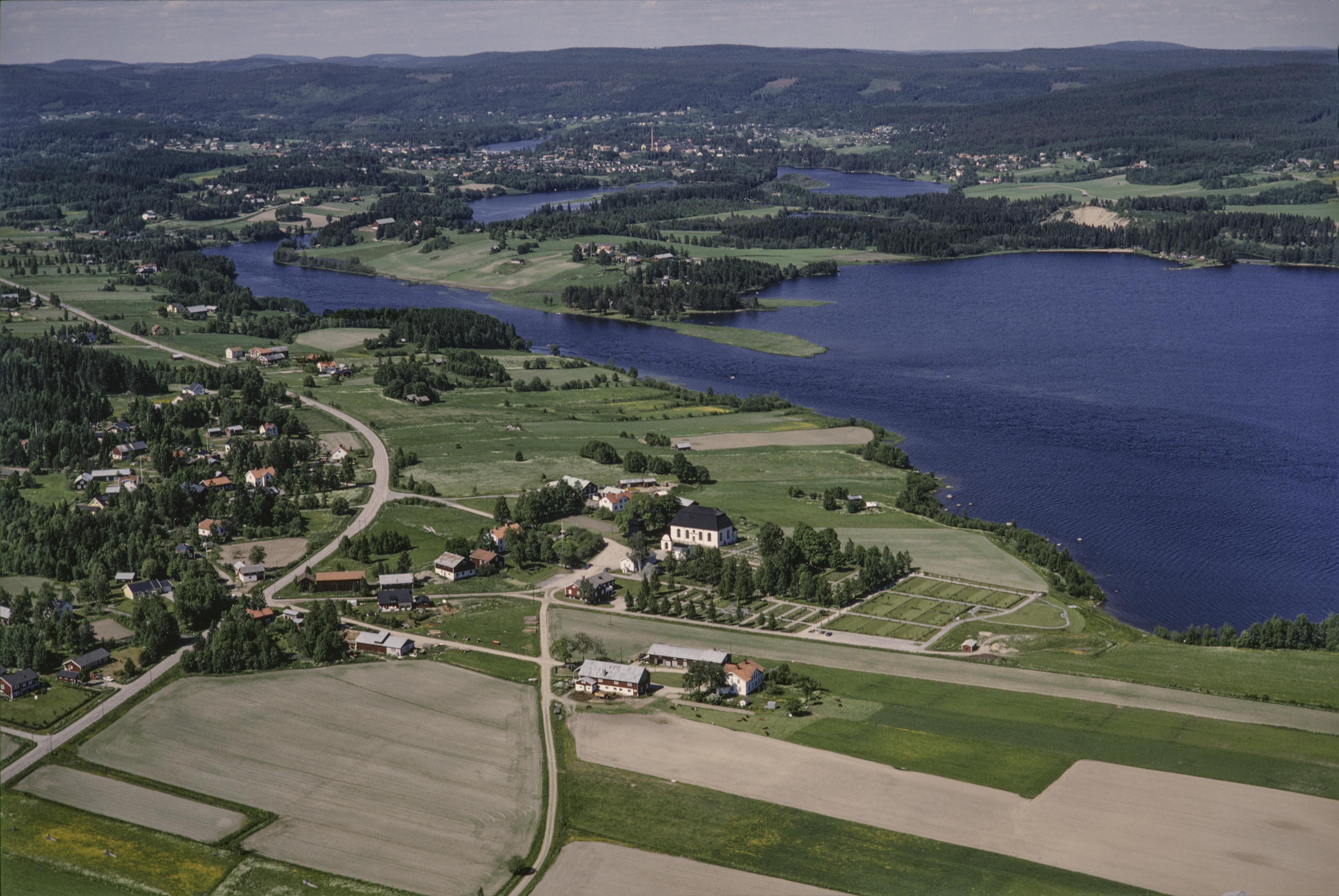 Beskrivning: Ån Ljungans dalgång vid Attmars kyrkby och sjön Marmen. Attmars kyrka under bildens mitt. Vid kyrkan boplats RAÄnr Attmar 188:1 m.m. I bildens övre del Matfors tätort i Tuna socken. Bilden är tagen mot (väderstreck): NNV