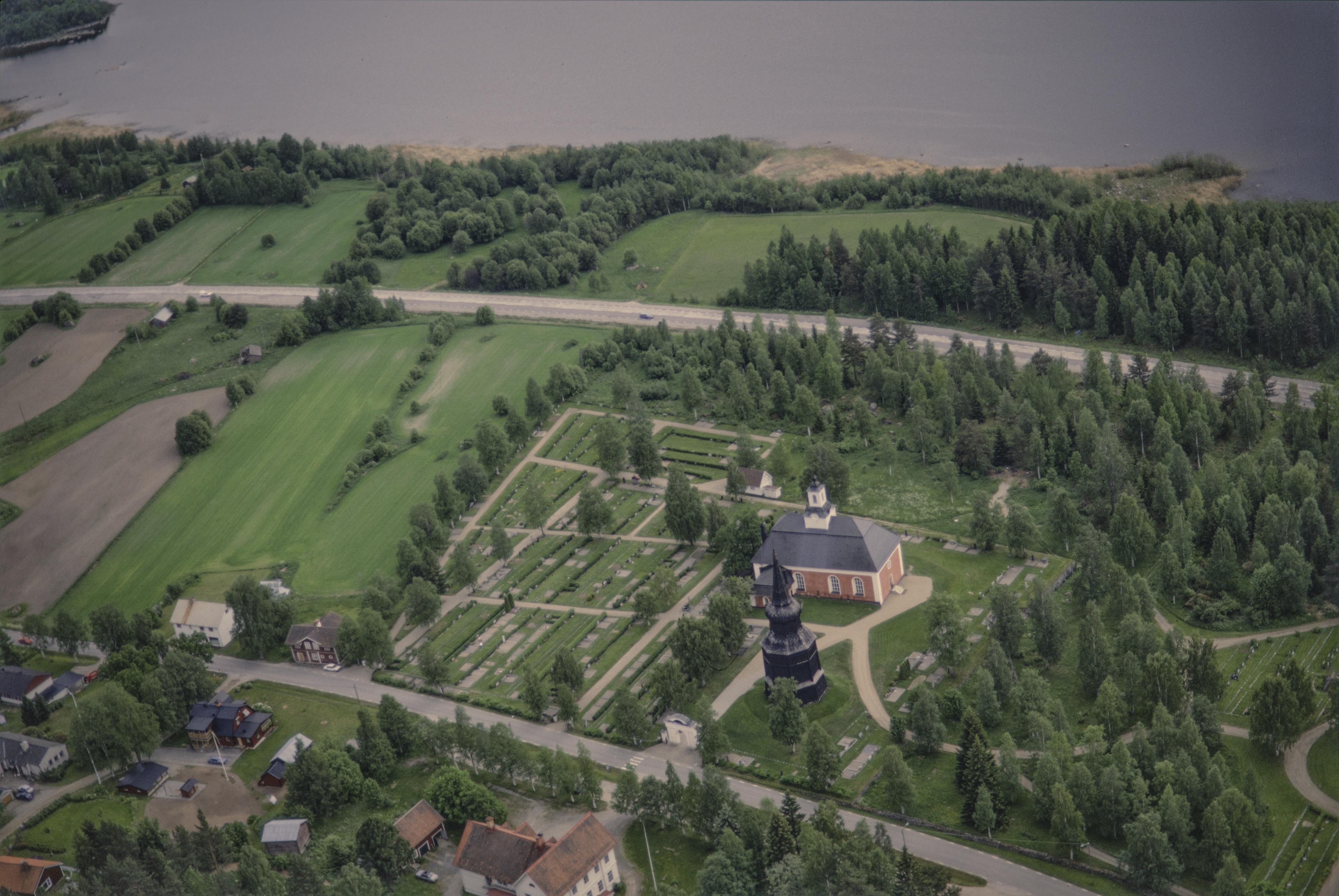 Beskrivning: Ån Ljungans dalgång vid Borgsjön och Borgsjö kyrkby. Till höger om bildens mitt Borgsjö kyrka. Vid vägen i bildens nedre kant minnessten RAÄnr Borgsjö 255:1. Bilden är tagen mot (väderstreck): S