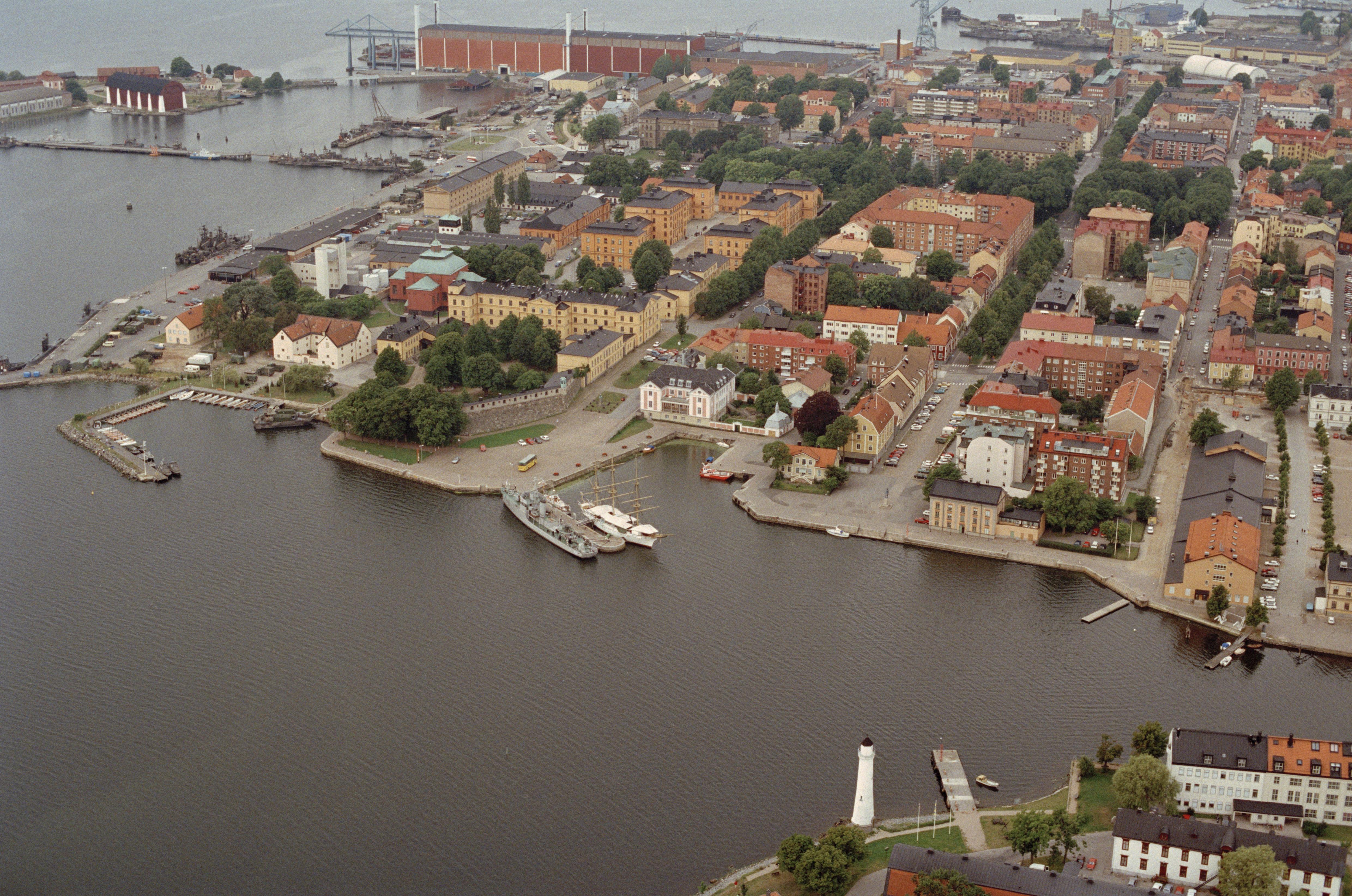Beskrivning: Trossö hamn i Karlskrona stad. Bilden är tagen mot (väderstreck): SV