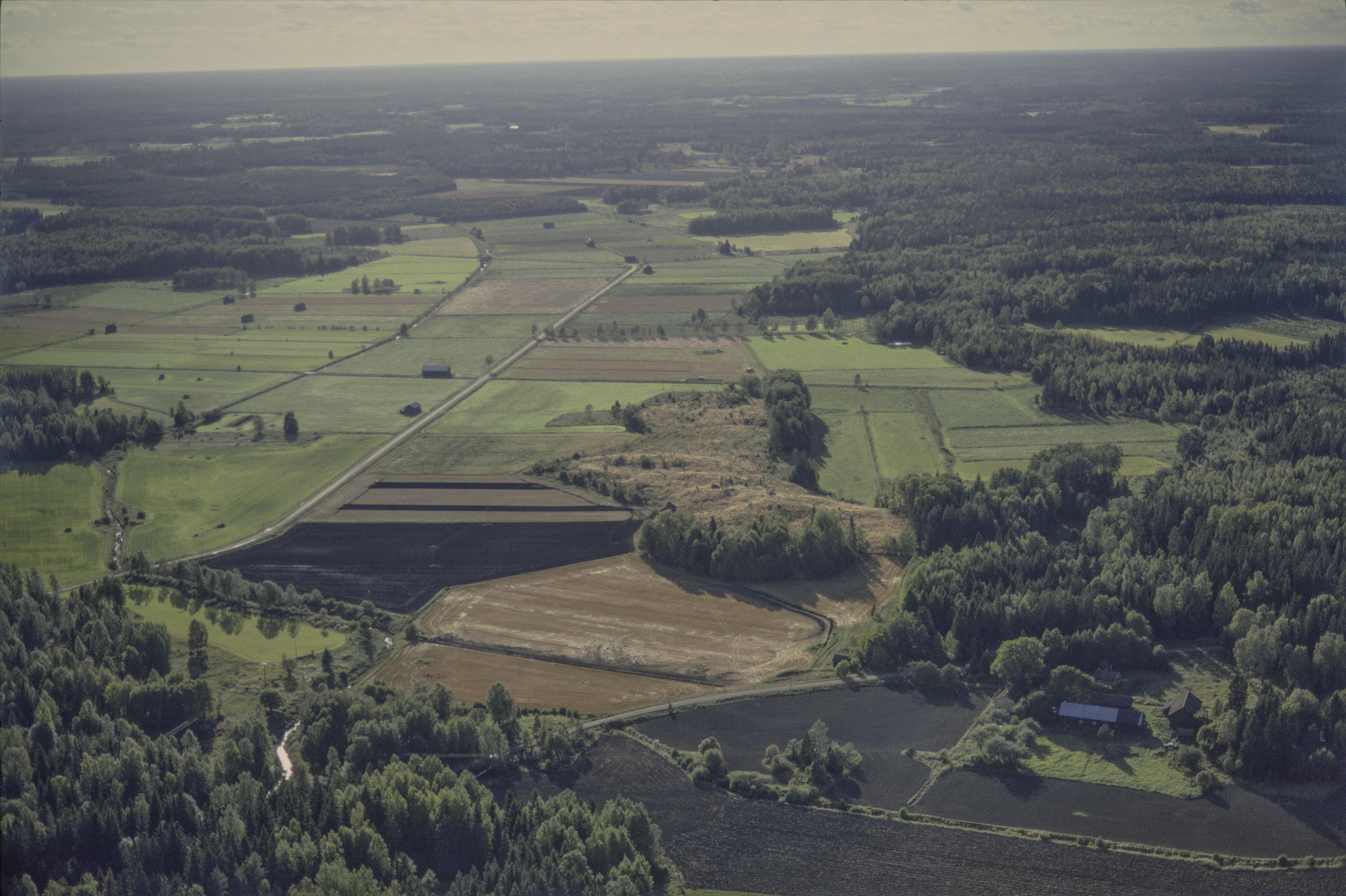 Beskrivning: Björklingeåns dalgång vid Sotmyra by. I bildens nedre del boplats RAÄnr Skuttunge 251:1. Vid bildens mitt boplats RAÄnr Skuttunge 318:1 vid Fräkendalen. Bilden är tagen mot (väderstreck): SV