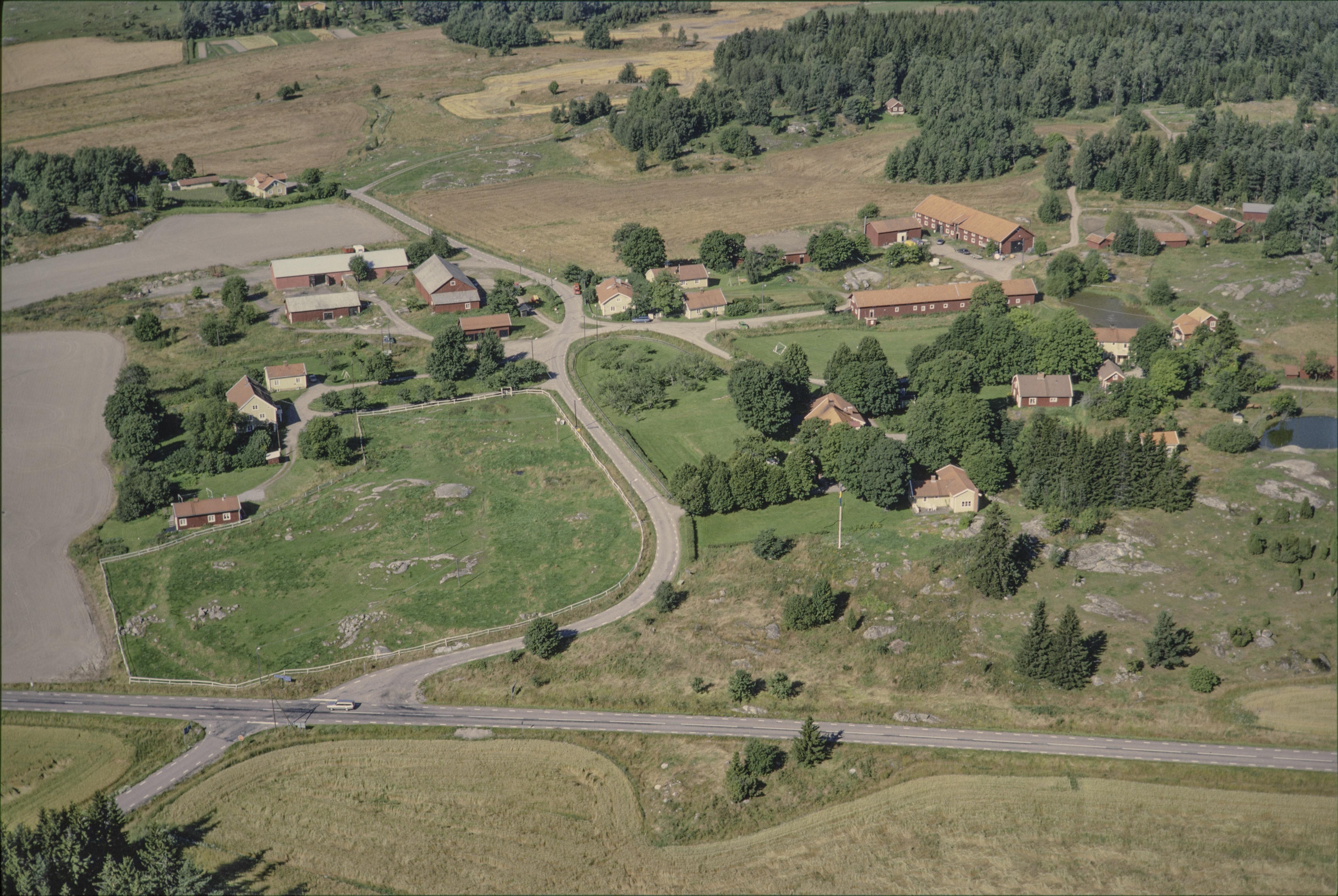 Beskrivning: Kimsta by. Under bildens mitt hög RAÄnr Skånela 161:1. Bilden är tagen mot (väderstreck): VNV