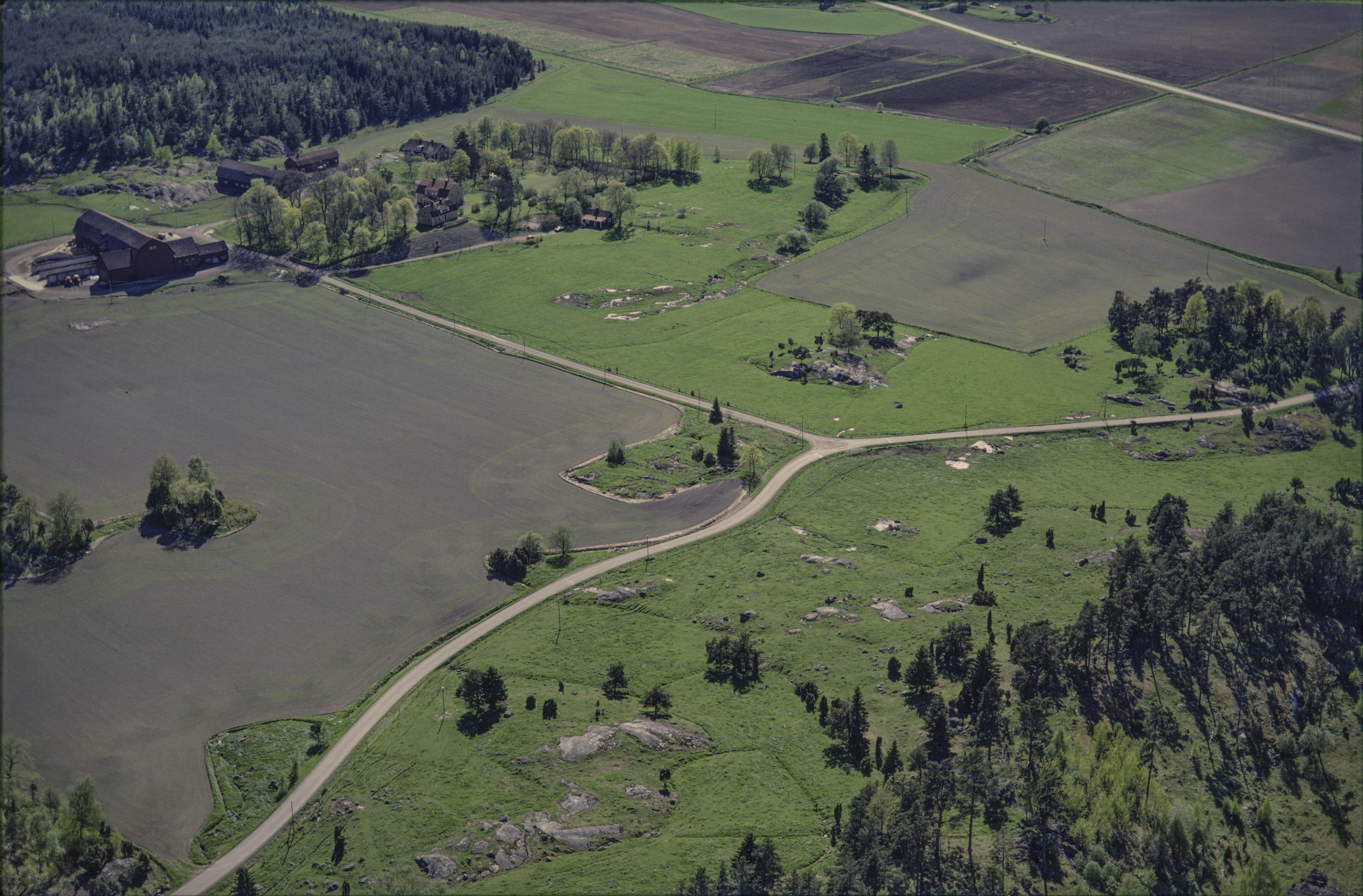 Beskrivning: Tjusta gård. Vid bildens mitt bytomt RAÄnr Skånela 261. Bilden är tagen mot (väderstreck): SV
