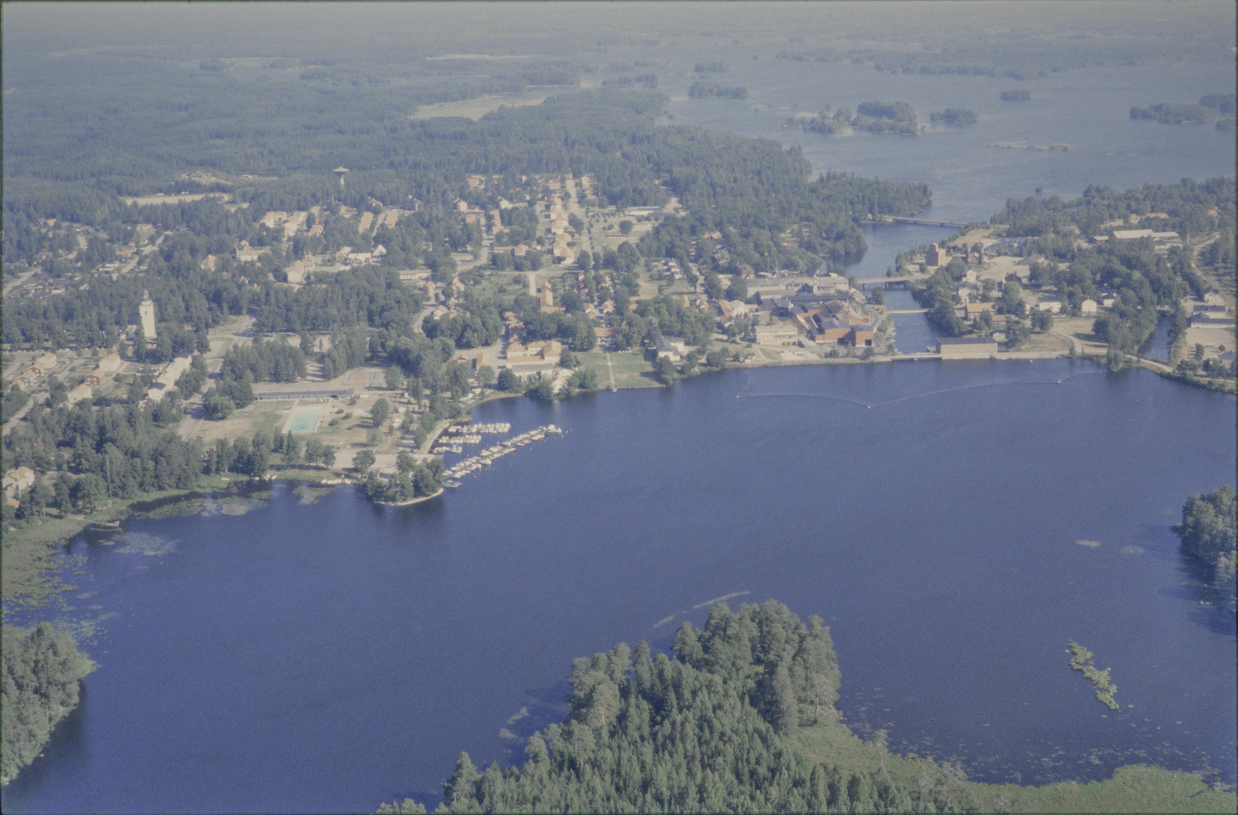 Beskrivning: Söderfors tätort / Söderfors bruk. Byggnadsminne med bl.a. hytt- och hammarområde RAÄnr Söderfors 90. Söderfors kyrka till vänster om bildens mitt. Sjön Fäbodfjärden i bildens nedre del, i bildens övre del sjön Untrafjärden. Bilden är tagen mot (väderstreck): NNO