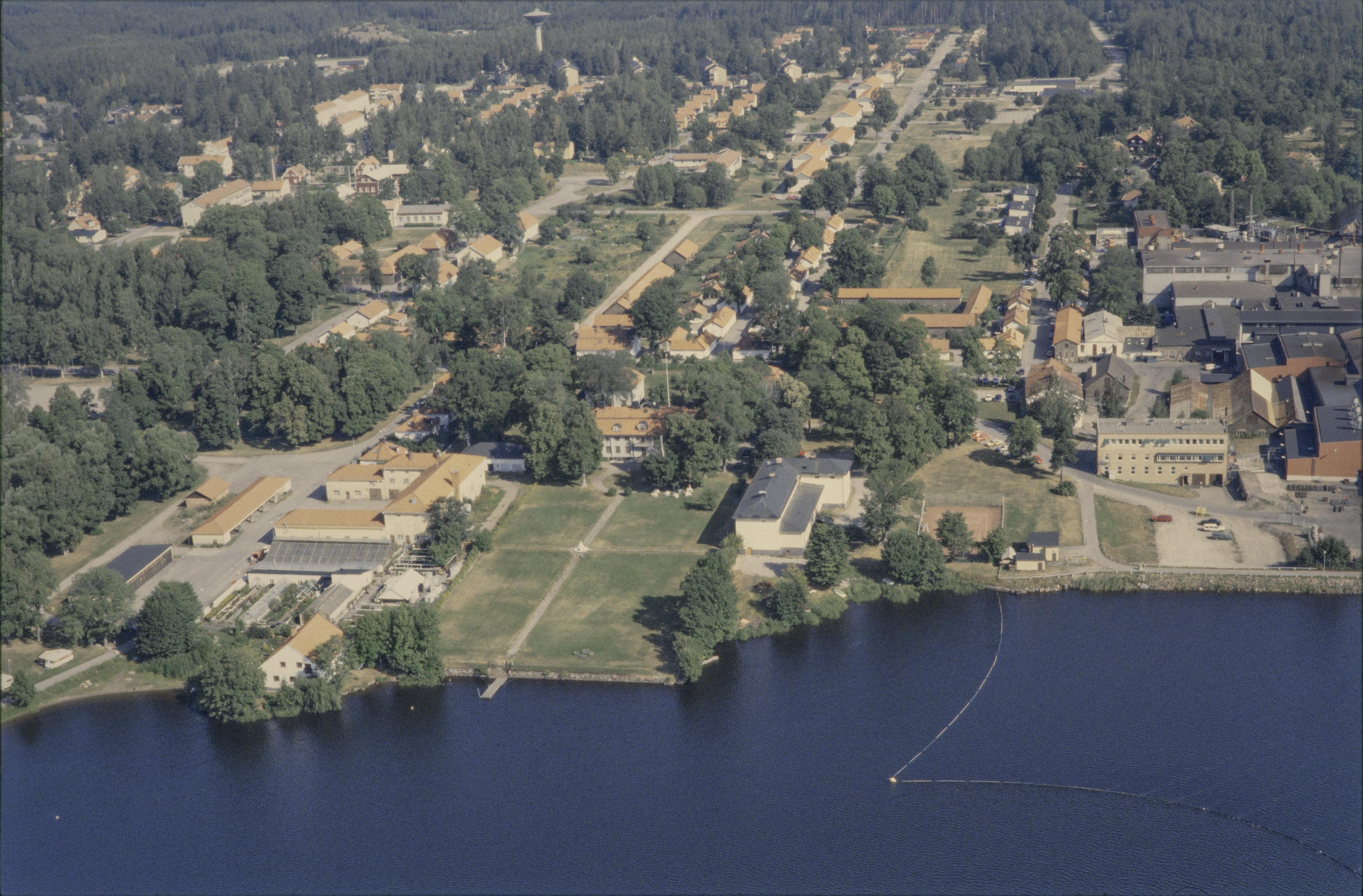 Beskrivning: Söderfors tätort / Söderfors bruk. Byggnadsminne med bl.a. hytt- och hammarområde RAÄnr Söderfors 90. Sjön Fäbodfjärden i bildens nedre del. Bilden är tagen mot (väderstreck): NNV