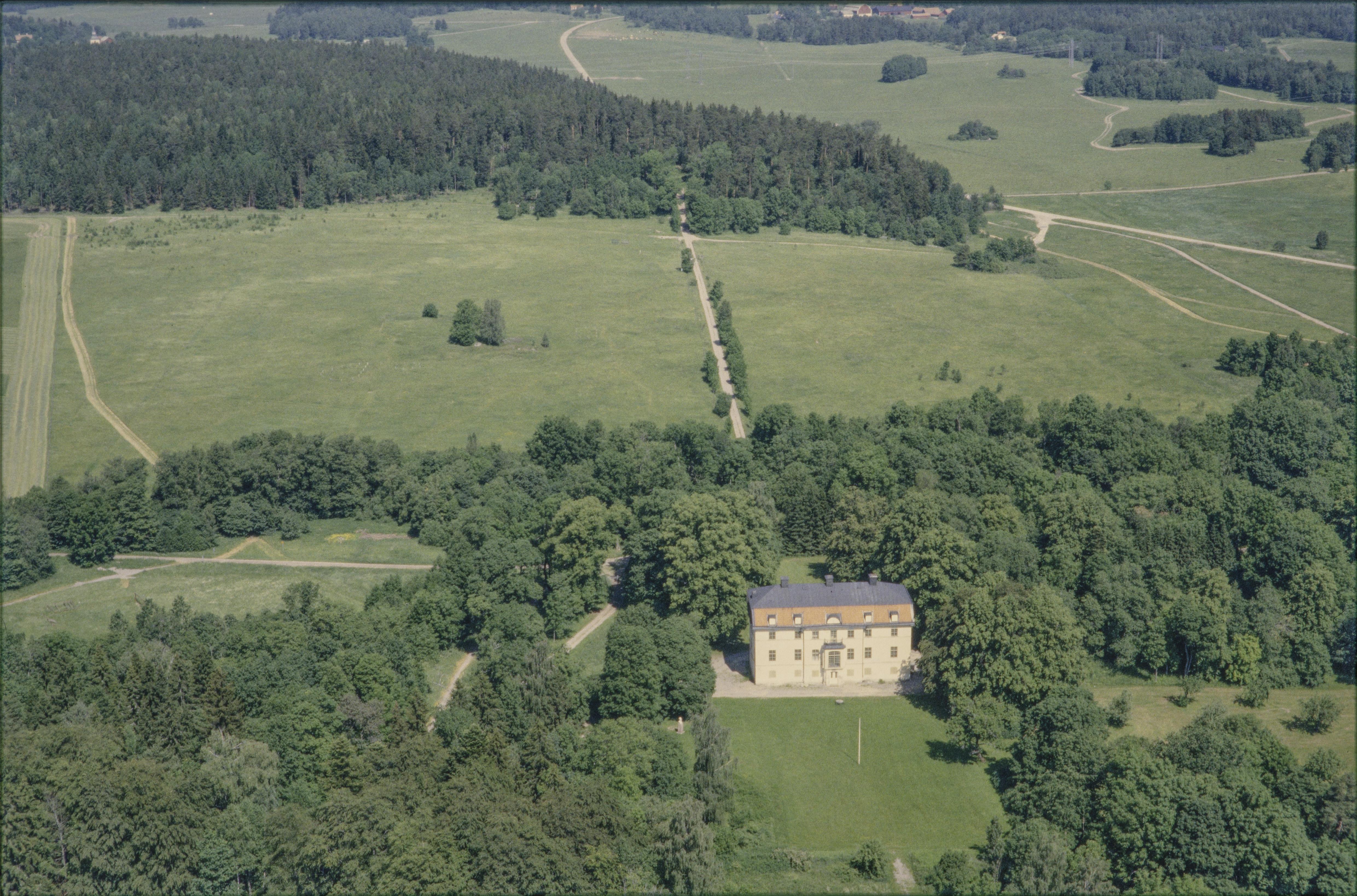 Beskrivning: Granhammars slott. Till vänster gravhögaar RAÄnr Västra Ryd 25:1-3, 26:1-2 m.fl. Bilden är tagen mot (väderstreck): N