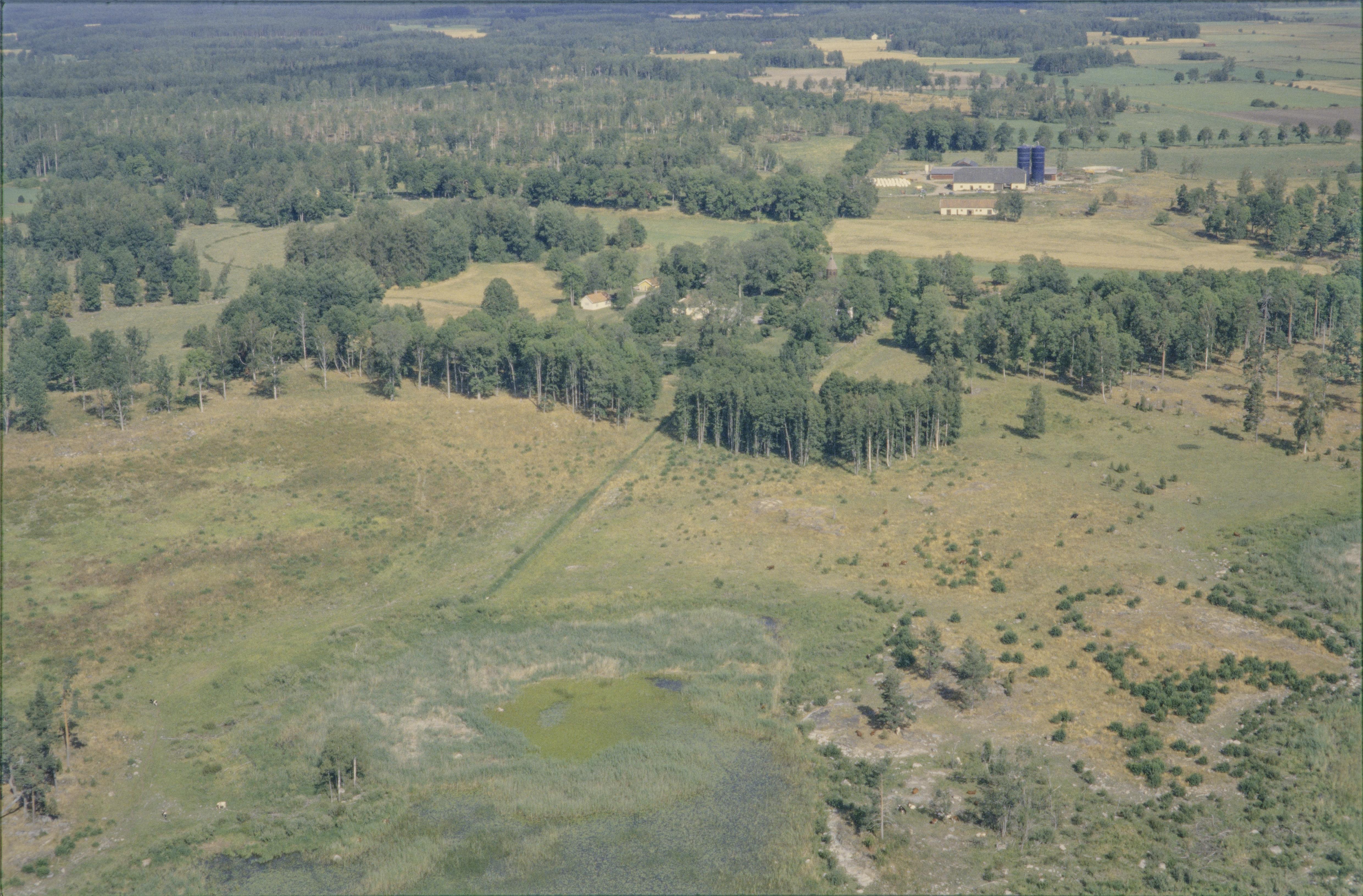 Beskrivning: Vid bildens mitt lämningar efter borg / vallgrav RAÄnr Östervåla 359 och bytomt Östervåla 362 vid Aspnäs herrgård norr om sjön Tämnaren. Aspnäs gårdskyrka vid bildens mitt, Bilden är tagen mot (väderstreck): N