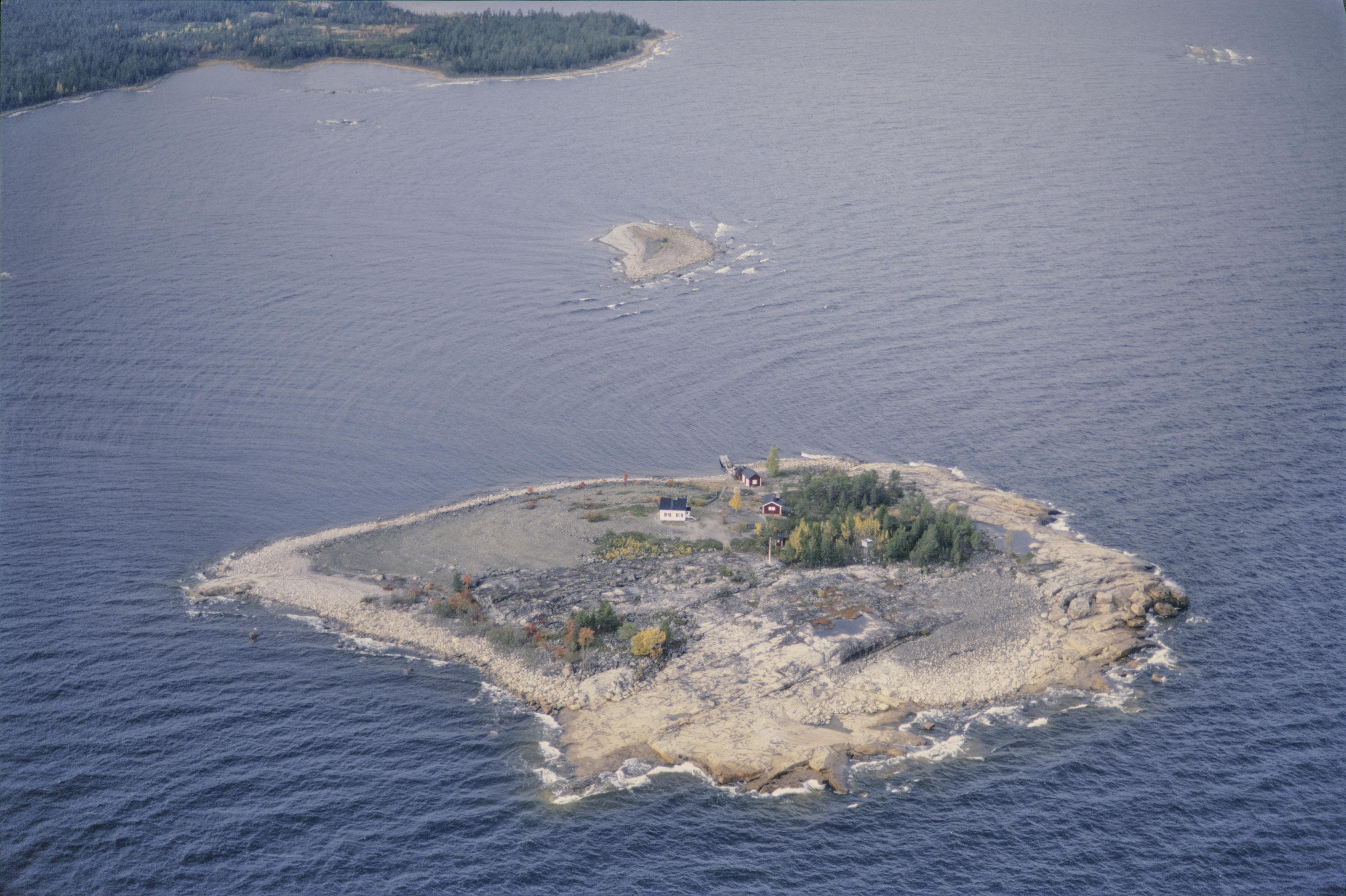 Beskrivning: Holmen Hamnskäret (Lotsskäret) öster om Romelsön. På Hamnskäret en f.d. lotsplats med några små byggnader. Skäret Patran över bildens mitt. Uppe till vänster i bildens övre kant Rönnskäret på Romelsön. Bilden är tagen mot (väderstreck): NV