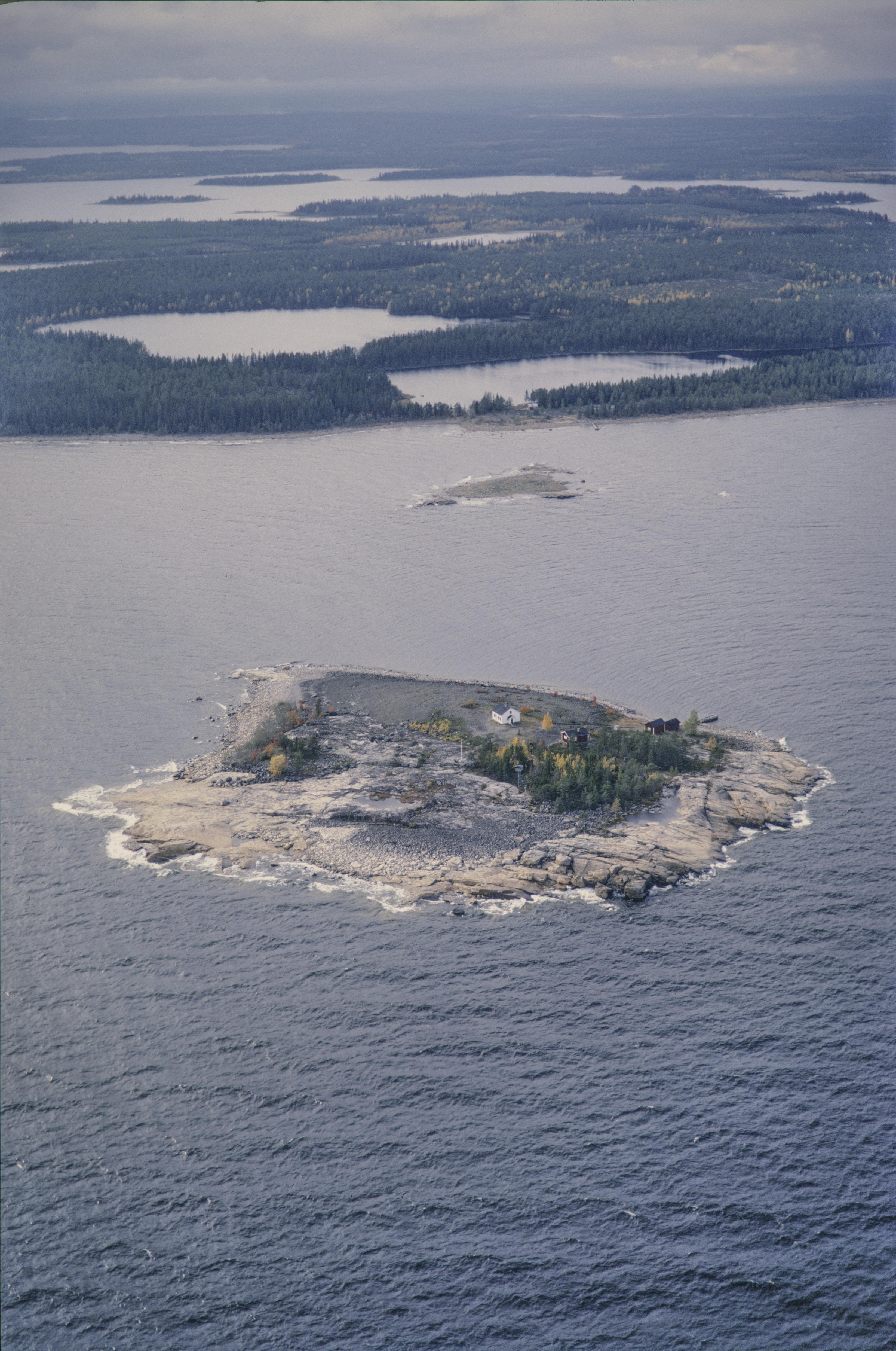 Beskrivning: Holmen Hamnskäret (Lotsskäret) öster om Romelsön. På Hamnskäret en f.d. lotsplats. Skäret Galten över bildens mitt. I bildens övre del fiskeläge RAÄnr Byske 124:1 och röse Byske 33:1 vid Finnviken och Hamnviken på Romelsön. Bilden är tagen mot (väderstreck): VSV