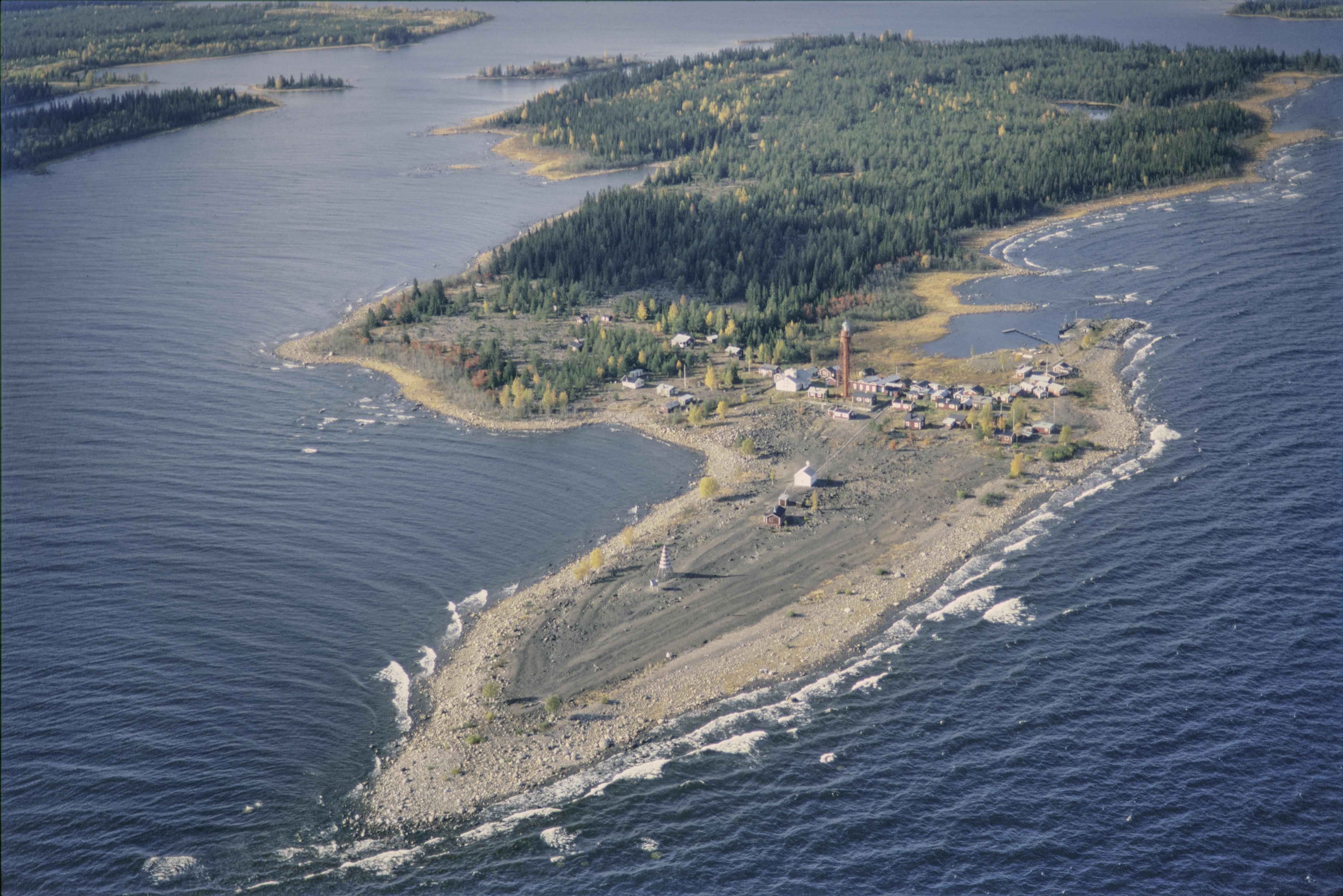 Beskrivning: Ön Pite-Rönnskär (skrivs även Piteå-Rönnskär och Rönnskär). I bildens nedre del Kyrkudden med Pite-Rönnskärs kapell (ljus byggnad till höger under bildens mitt), Pite-Rönnskärs fyrplats, lotsstation, fritidshus, gistgård RAÄnr Byske 380:1 m.m. Kinnbäcksfjärden i bildens övre kant. Bilden är tagen mot (väderstreck): V