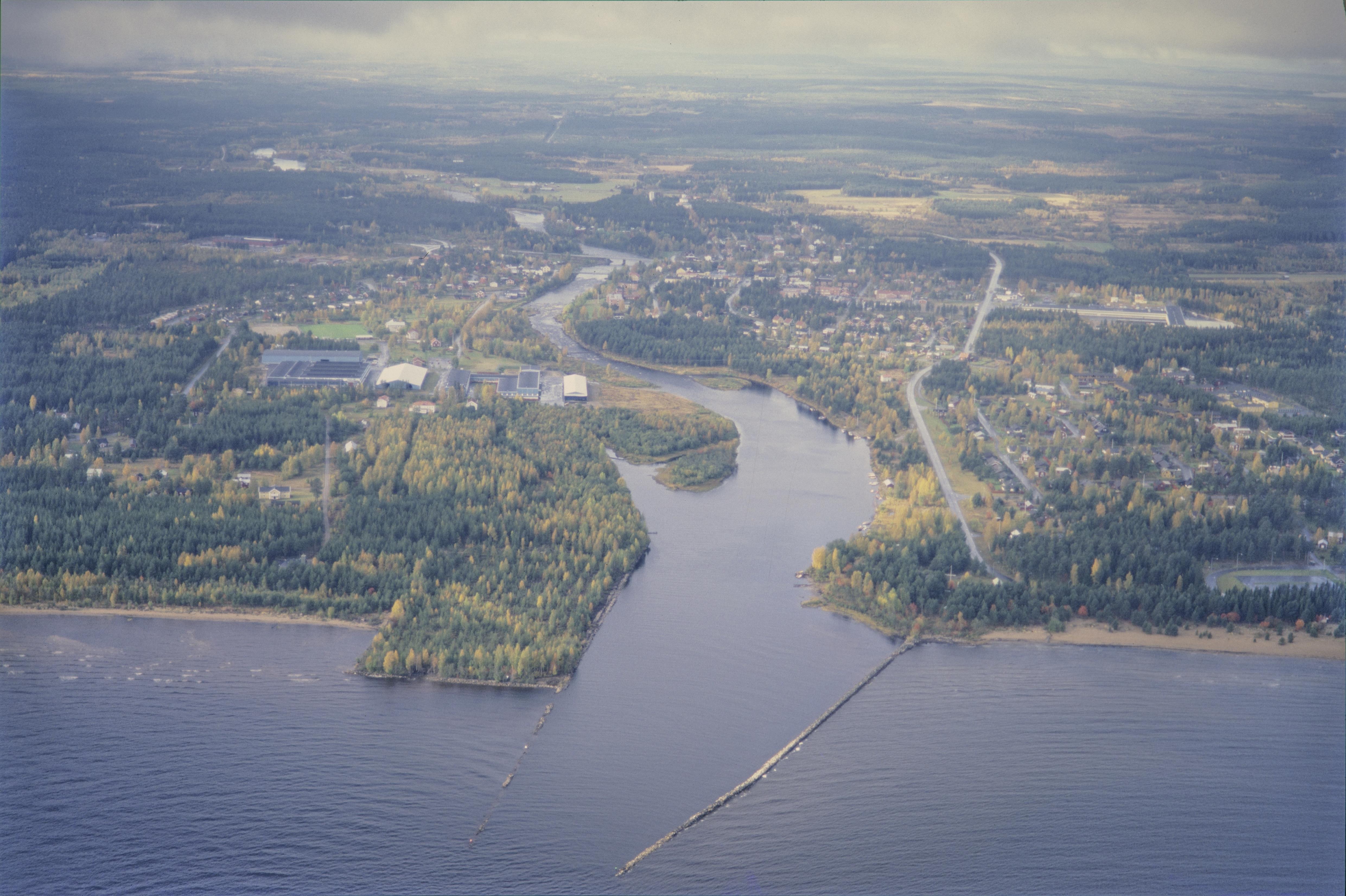 Beskrivning: Byske tätort och kyrkby. I bildens nedre del Byskeälvens mynning i Byskefjärden. Till vänster om älvmynningen två småindustriområden, RAÄnr Byske 142:1 och 930:1. Bilden är tagen mot (väderstreck): VNV