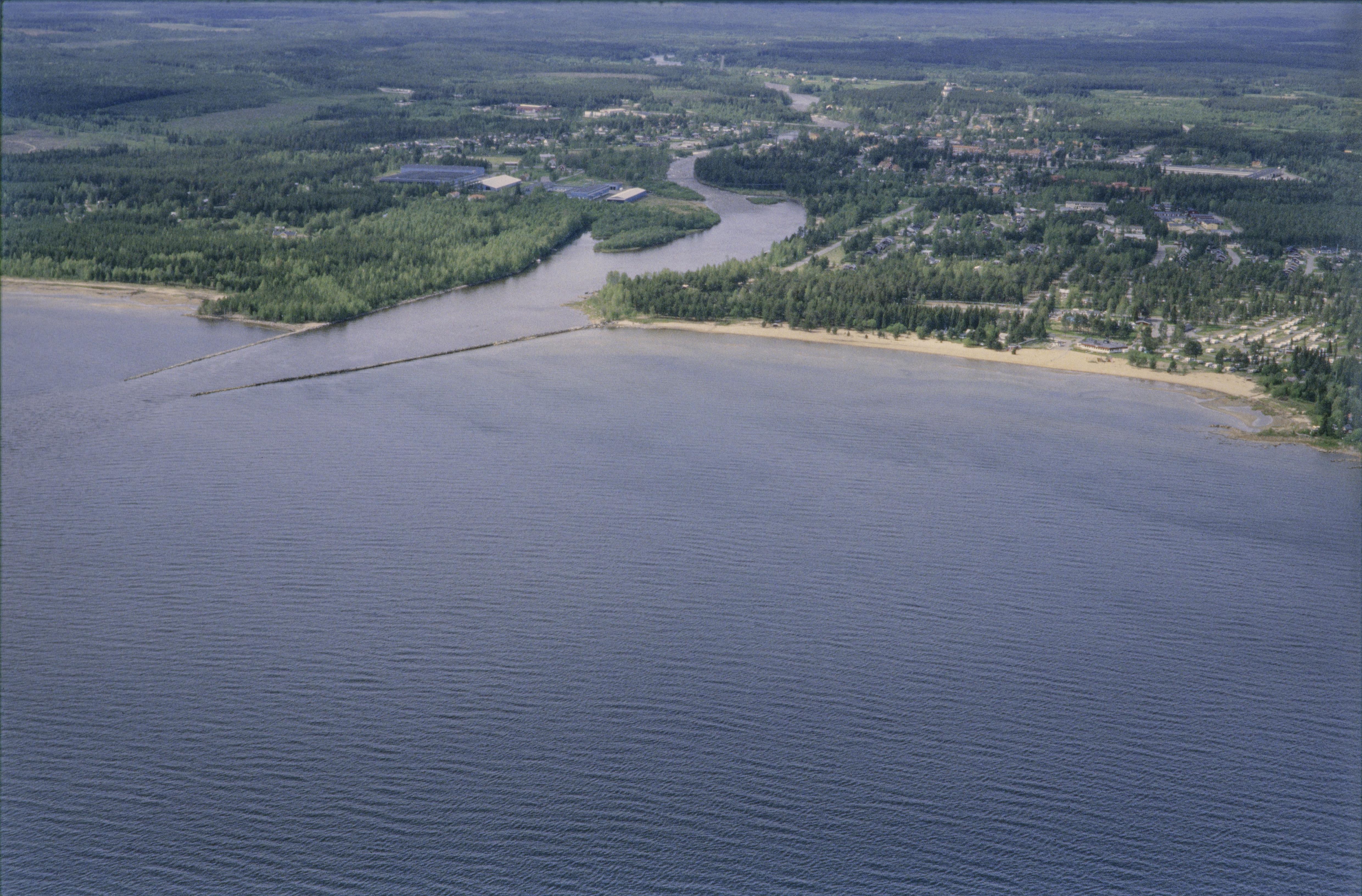 Beskrivning: Byske tätort och kyrkby. I bildens nedre del Byskeälvens mynning i Byskefjärden. Till vänster om älvmynningen två småindustriområden, RAÄnr Byske 142:1 och 930:1. Bilden är tagen mot (väderstreck): VSV