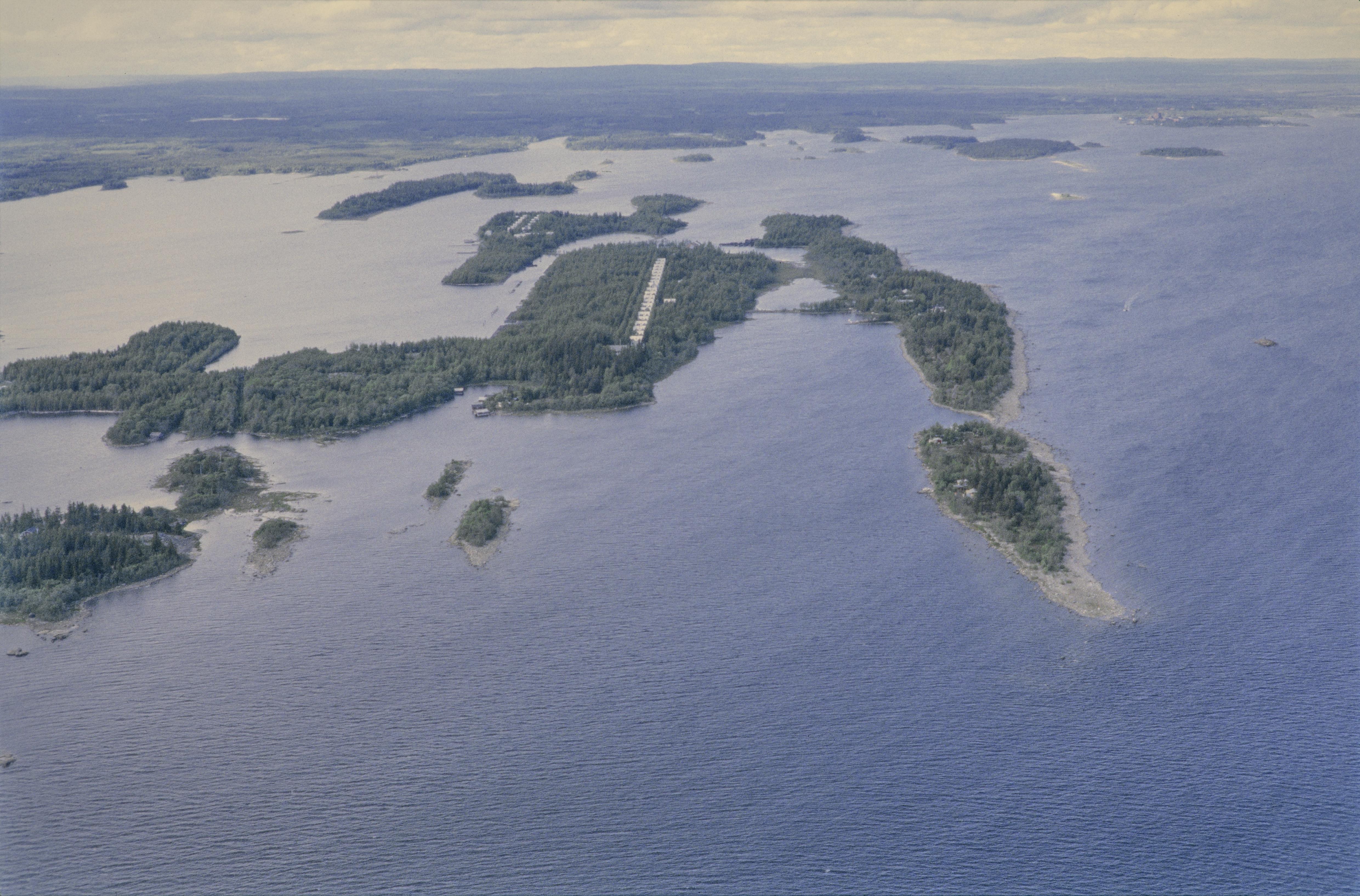 Beskrivning: Ögruppen Norrbyskär i norra delen av Örefjärden. Tidigare industriort med ångdrivet sågverk, arbetarbostäder, herrgård, skola med kyrksal, kägelbana m.m. anlagd på 1890-talet. Vid Per-Ivarsgrundet till höger om bildens mitt en gistgård RAÄnr Hörnefors 29:1. Bilden är tagen mot (väderstreck): NNV