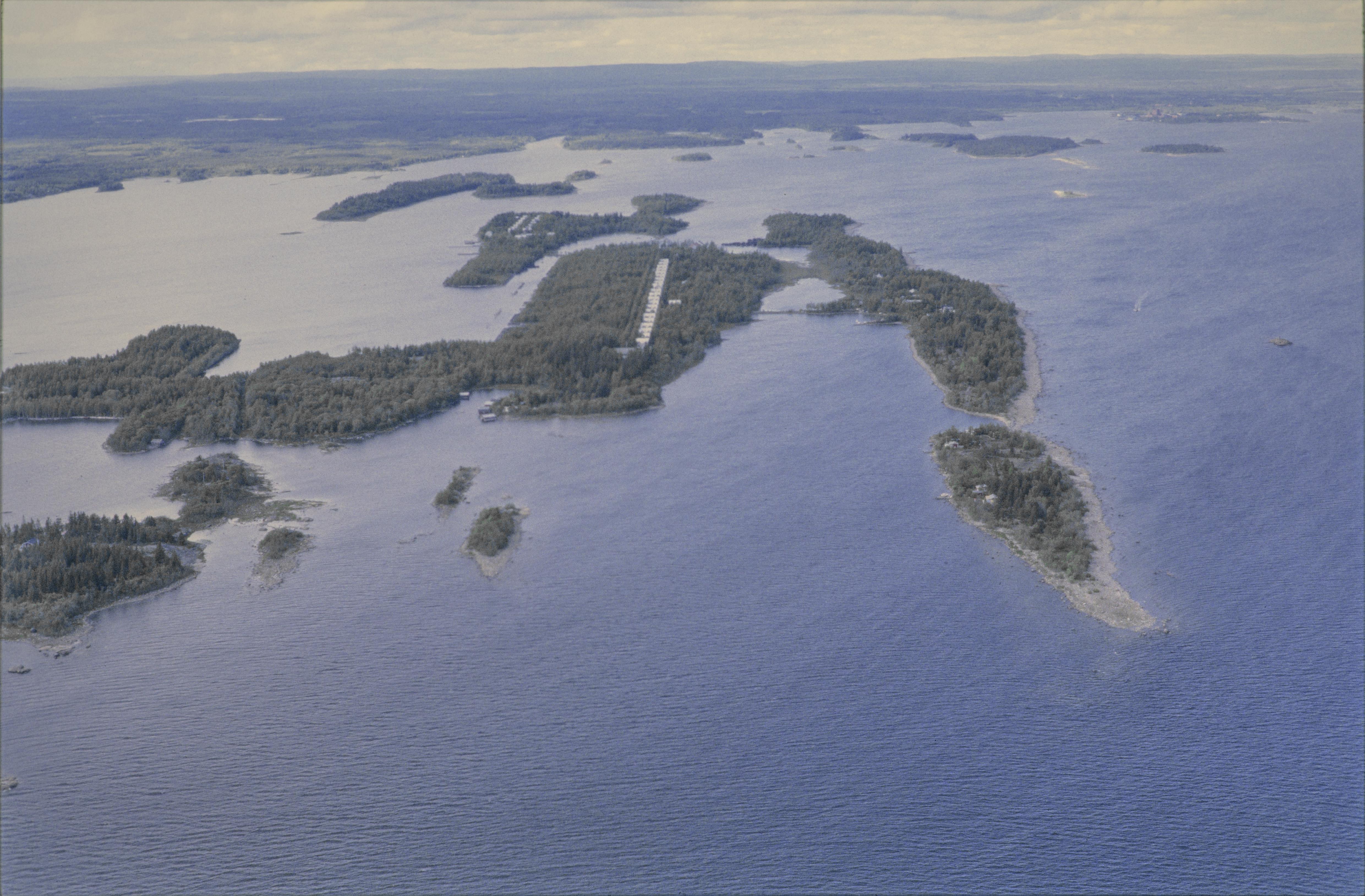 Beskrivning: Ögruppen Norrbyskär i norra delen av Örefjärden. Tidigare industriort med ångdrivet sågverk, arbetarbostäder, herrgård, skola med kyrksal, kägelbana m.m. anlagd på 1890-talet. Vid Per-Ivarsgrundet till höger om bildens mitt en gistgård RAÄnr Hörnefors 29:1. Bilden är tagen mot (väderstreck): NNV