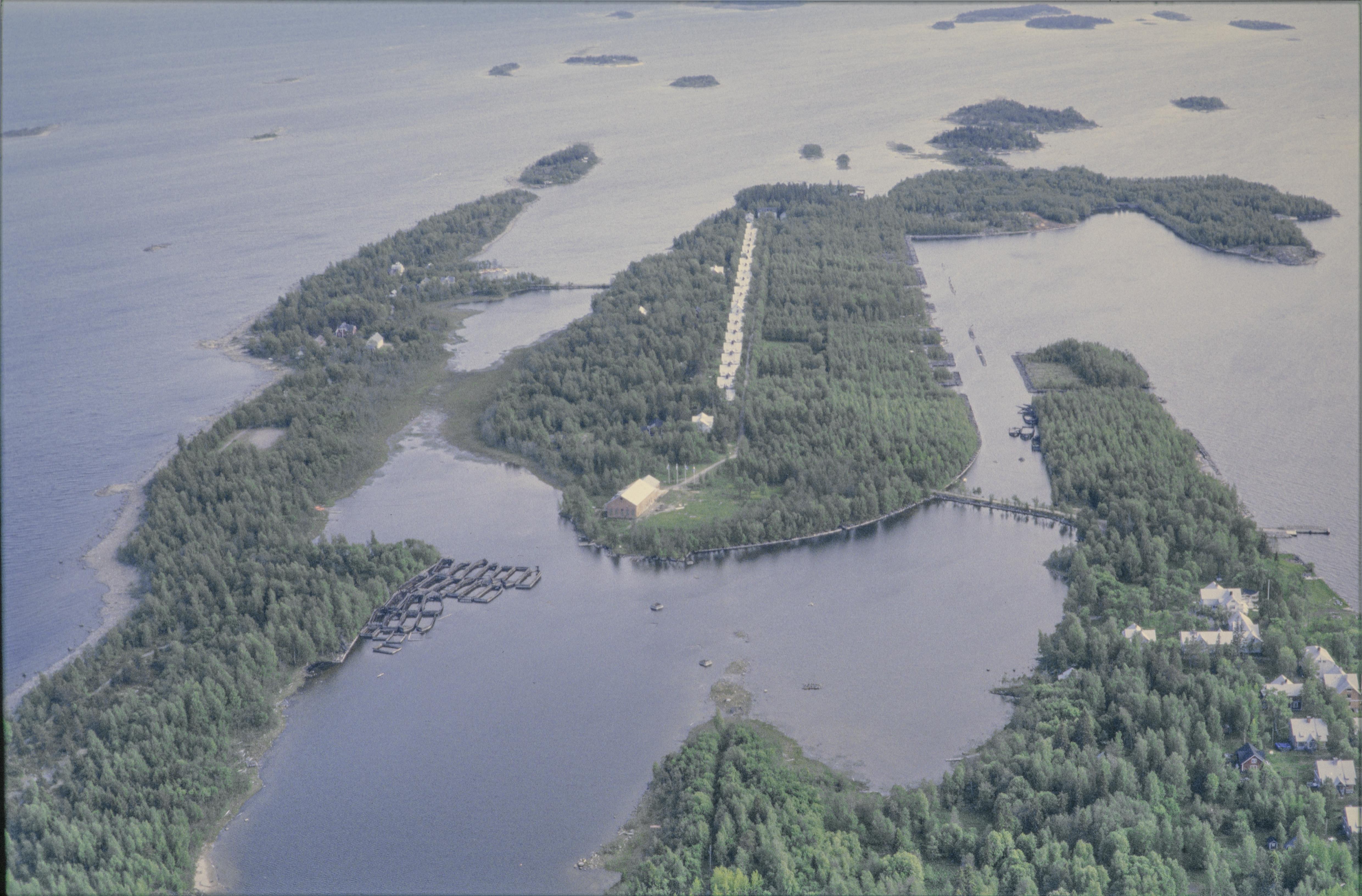 Beskrivning: Ögruppen Norrbyskär i norra delen av Örefjärden. Tidigare industriort med ångdrivet sågverk, arbetarbostäder, herrgård, skola med kyrksal, kägelbana m.m. anlagd på 1890-talet. Vid Per-Ivarsgrundet till vänster över bildens mitt en gistgård RAÄnr Hörnefors 29:1. Bilden är tagen mot (väderstreck): SSO