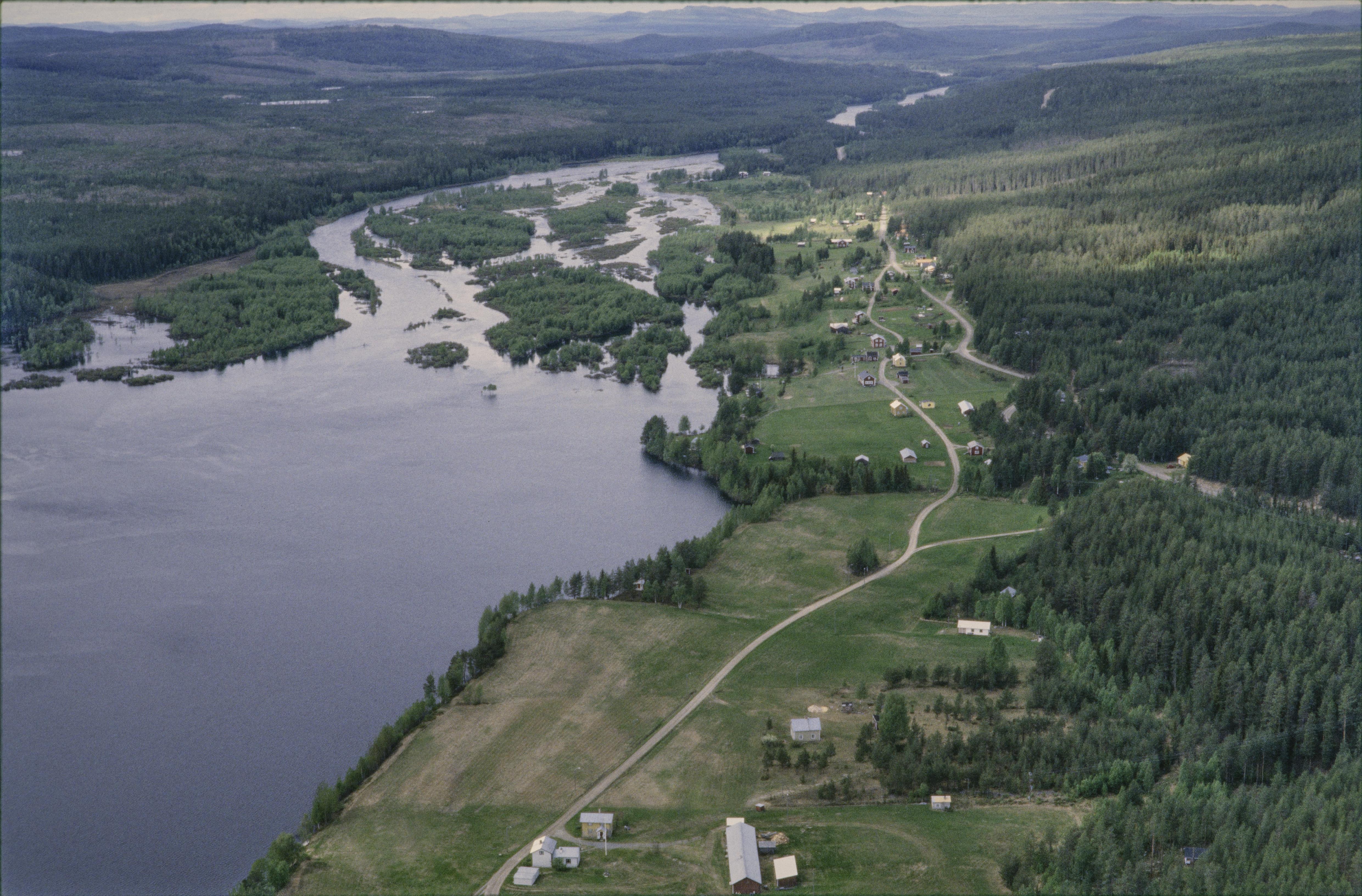 Beskrivning: Byskeälven vid sjön och byn Åselet. I skogen till i bildens högra kant fångstgrop RAÄnr Jörn 239:1, 272:1-3 m.fl. Bilden är tagen mot (väderstreck): NV