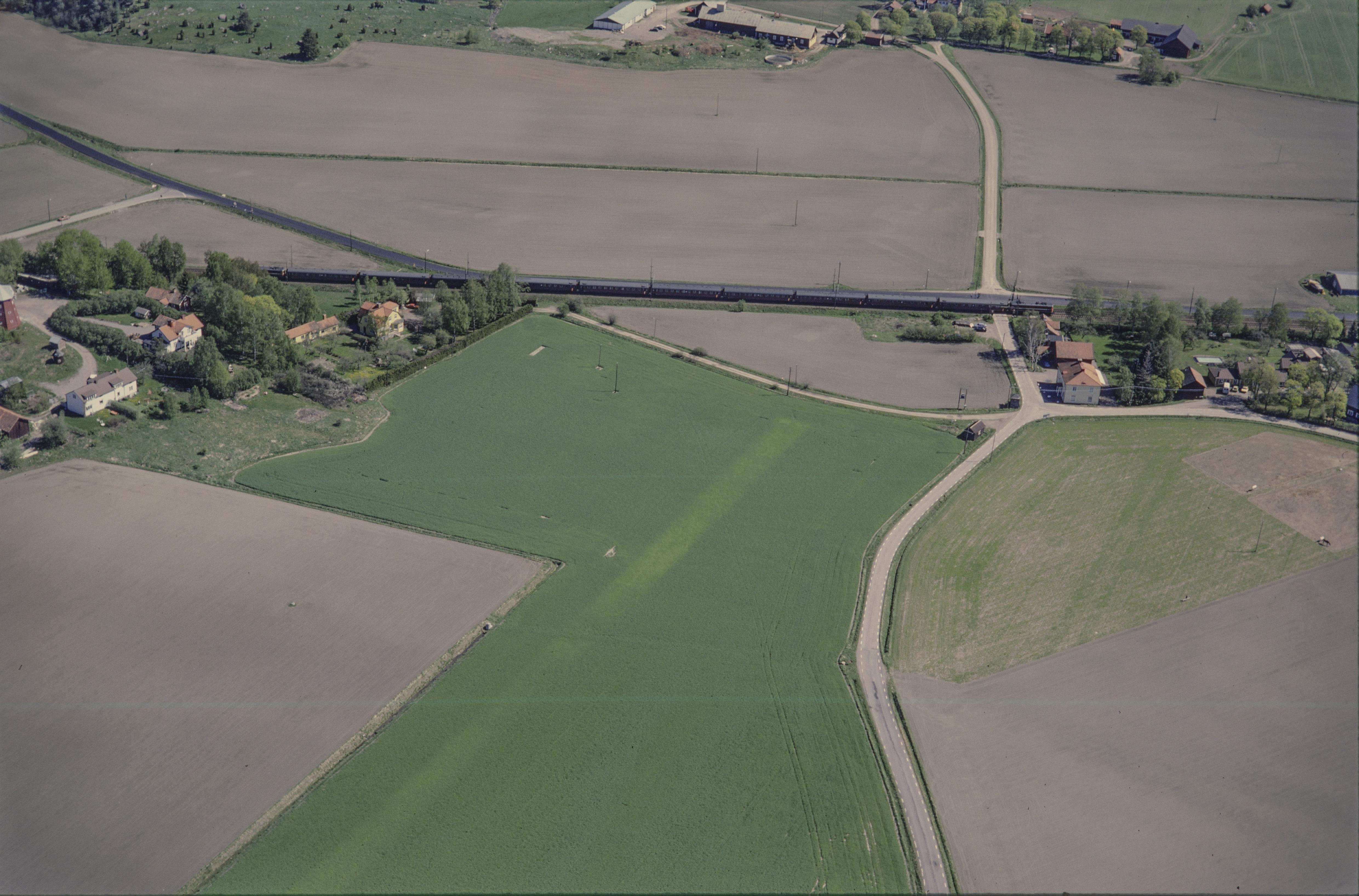 Beskrivning: Ista by. Vid bildens mitt gravfält RAÄnr Odensala 467:1-2. Över bildens mitt tåg vid hållplats. Skörsta by i bildens övre kant. Bilden är tagen mot (väderstreck): NO