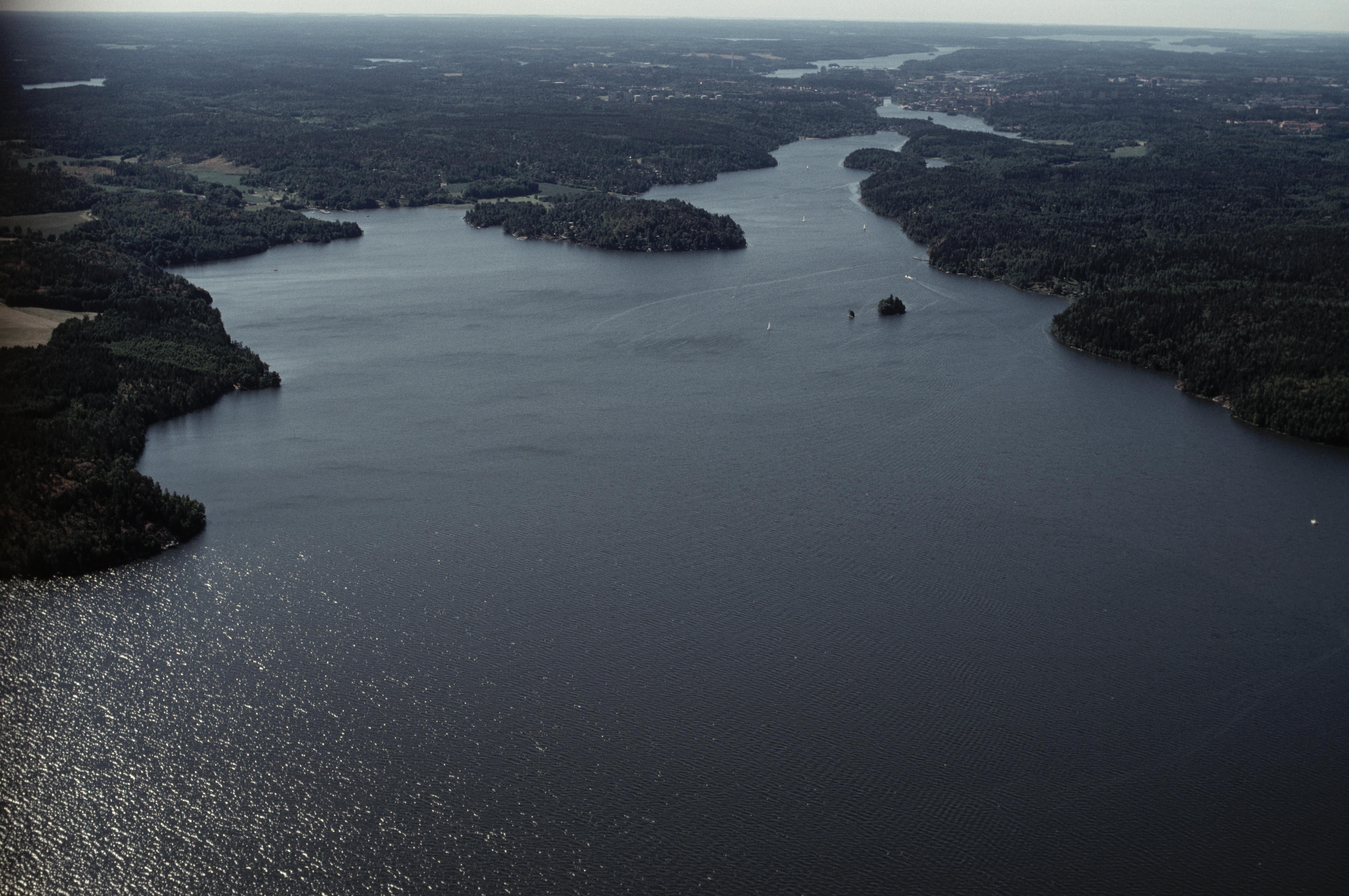 Beskrivning: Södertäljeviken markerar gränsen mellan socknen Salem (till vänster) och Ytterenhörna (till höger) Över bildens mitt röse RAÄnr Salem 288:1 på Holmen vid Viksbergs by. Bilden är tagen mot (väderstreck): SSO
