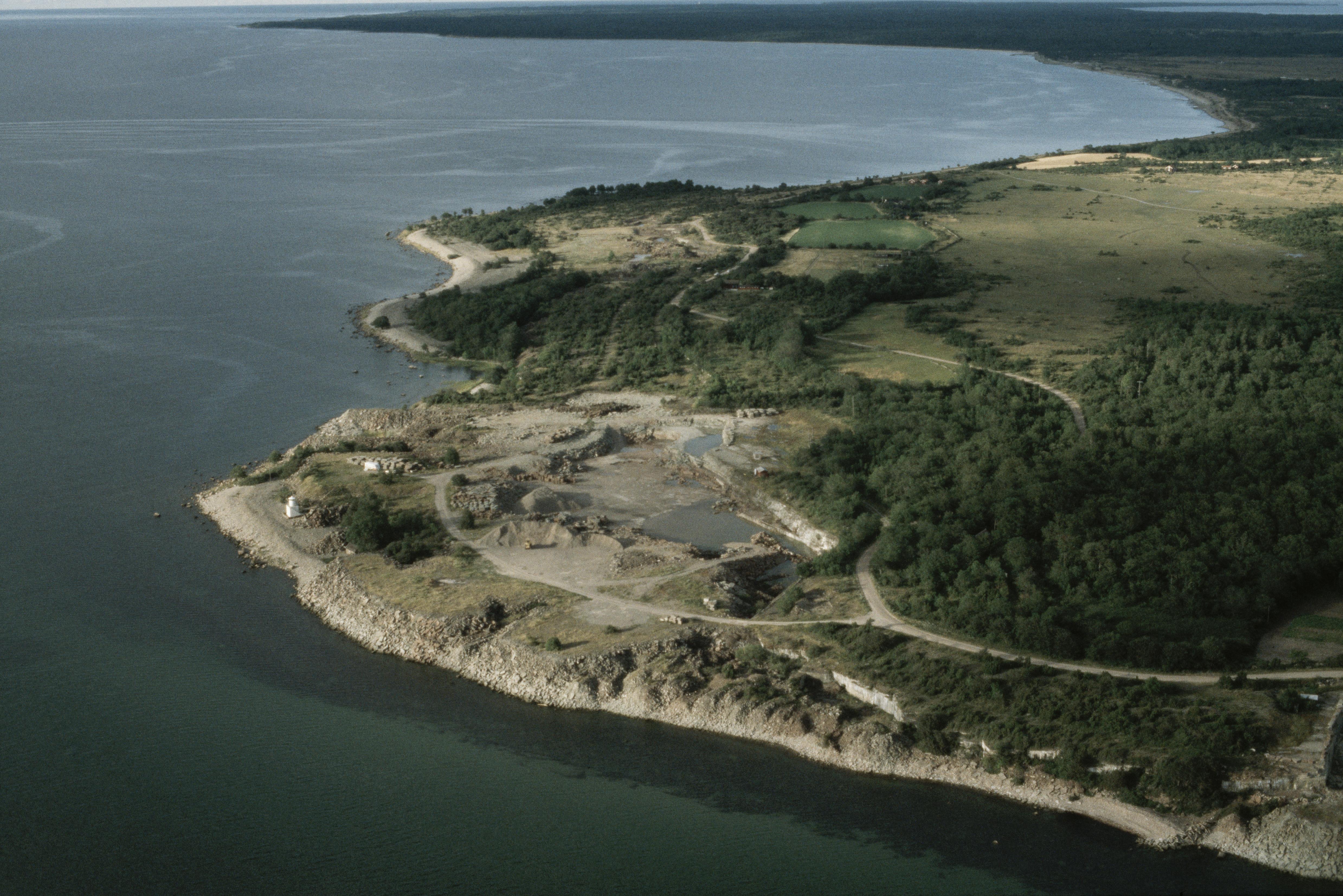 Beskrivning: Stenbrott på Hornsudden. Röse RAÄnr Högby 28:1. Bilden är tagen mot (väderstreck): NNO