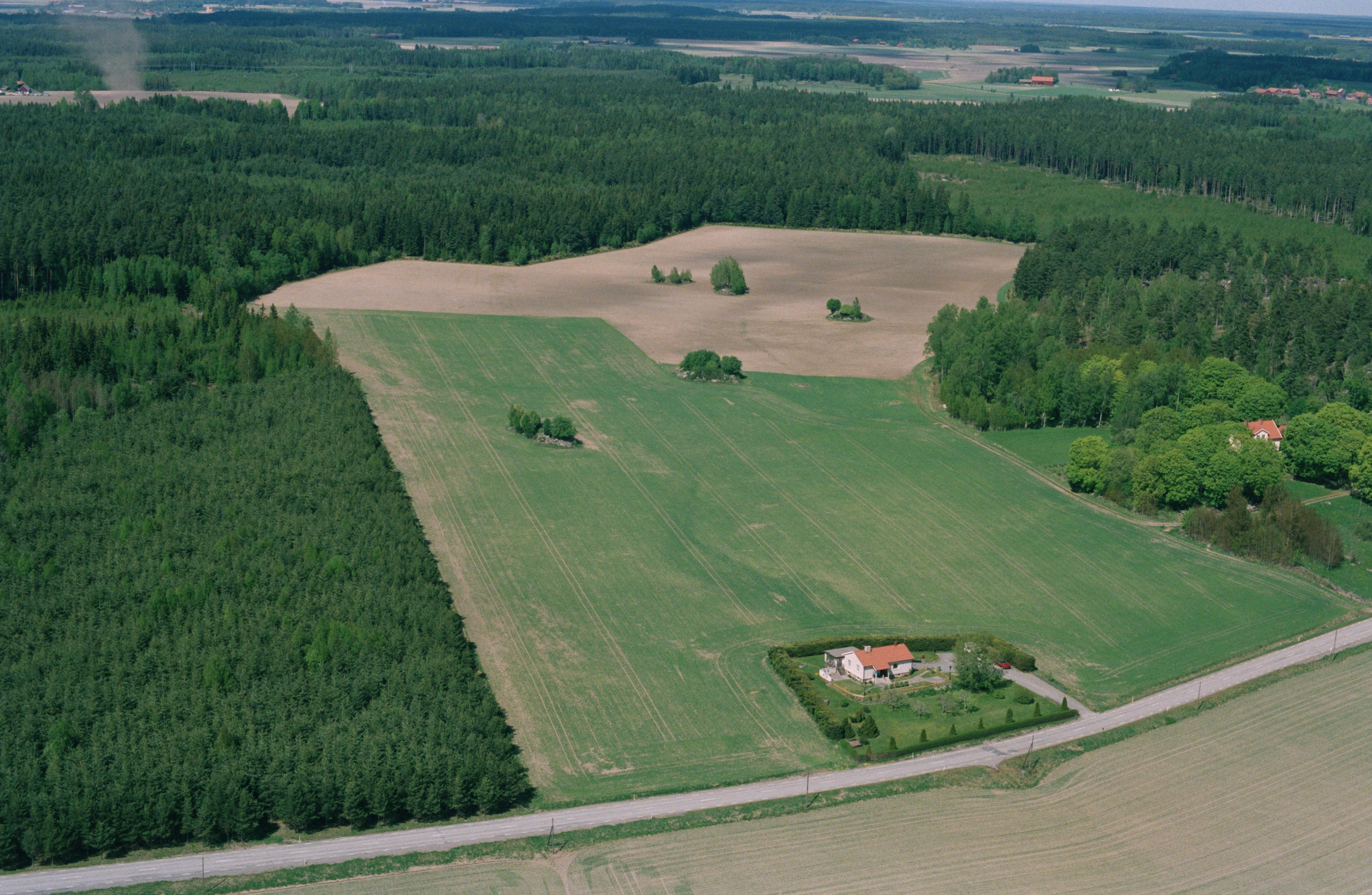 Beskrivning: Fornlämningsområde i dalgången vid Tuna. Under bildens mitt gravfält RAÄnr Västerås 575:1-2 m.fl. Över bildens mitt boplats i Gipen RAÄnr Västerås 925:1. Bilden är tagen mot (väderstreck): N
