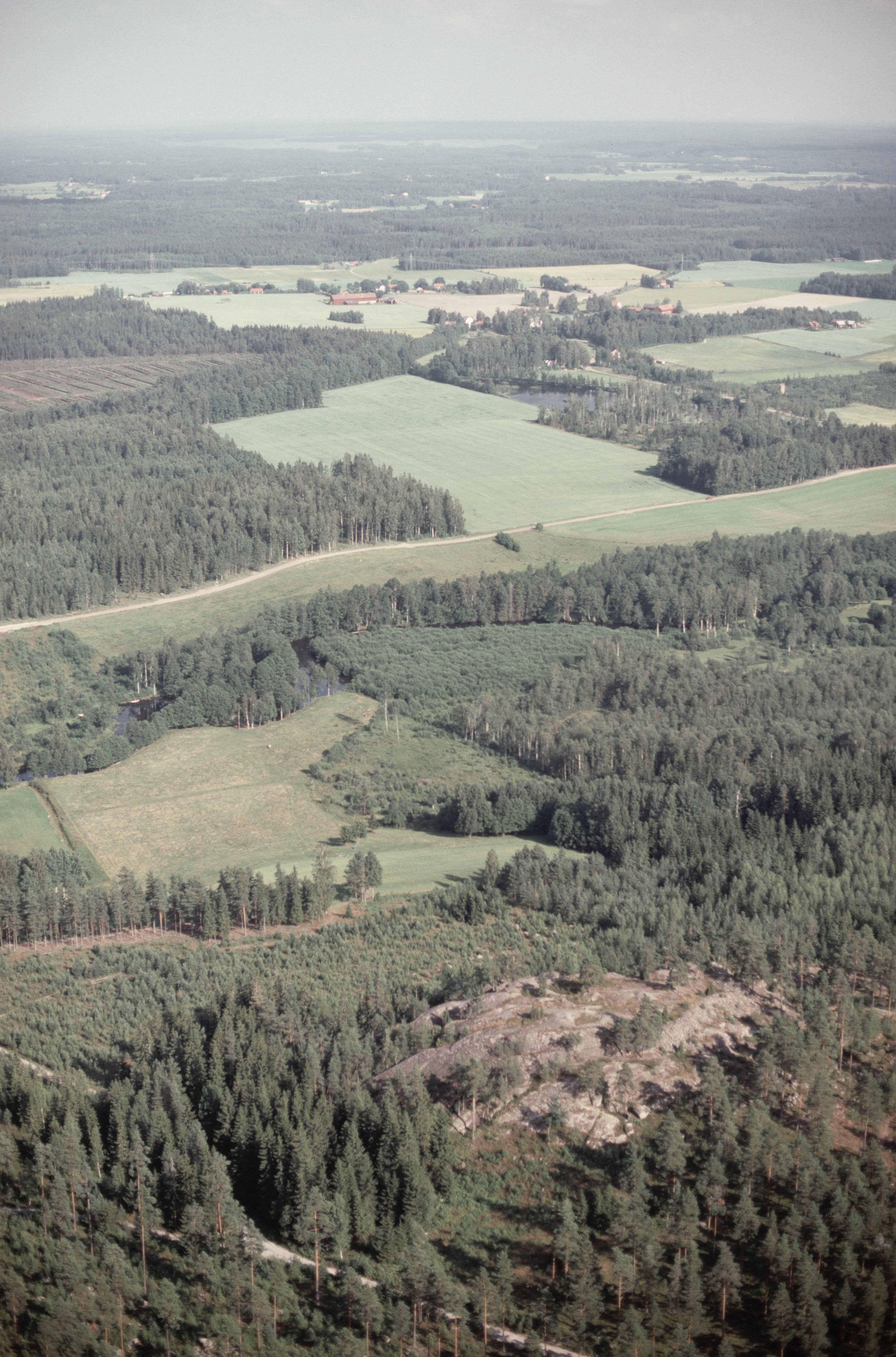 Beskrivning: Järleåns dalgång. Ån längs bildens mitt markerar gränsen mellan socknen Nora (i bildens nedre del) och Ervall (i bildens övre del). I bildens nedre del fornborgen Tistaborg RAÄnr Nora 84:1. Bilden är tagen mot (väderstreck): OSO
