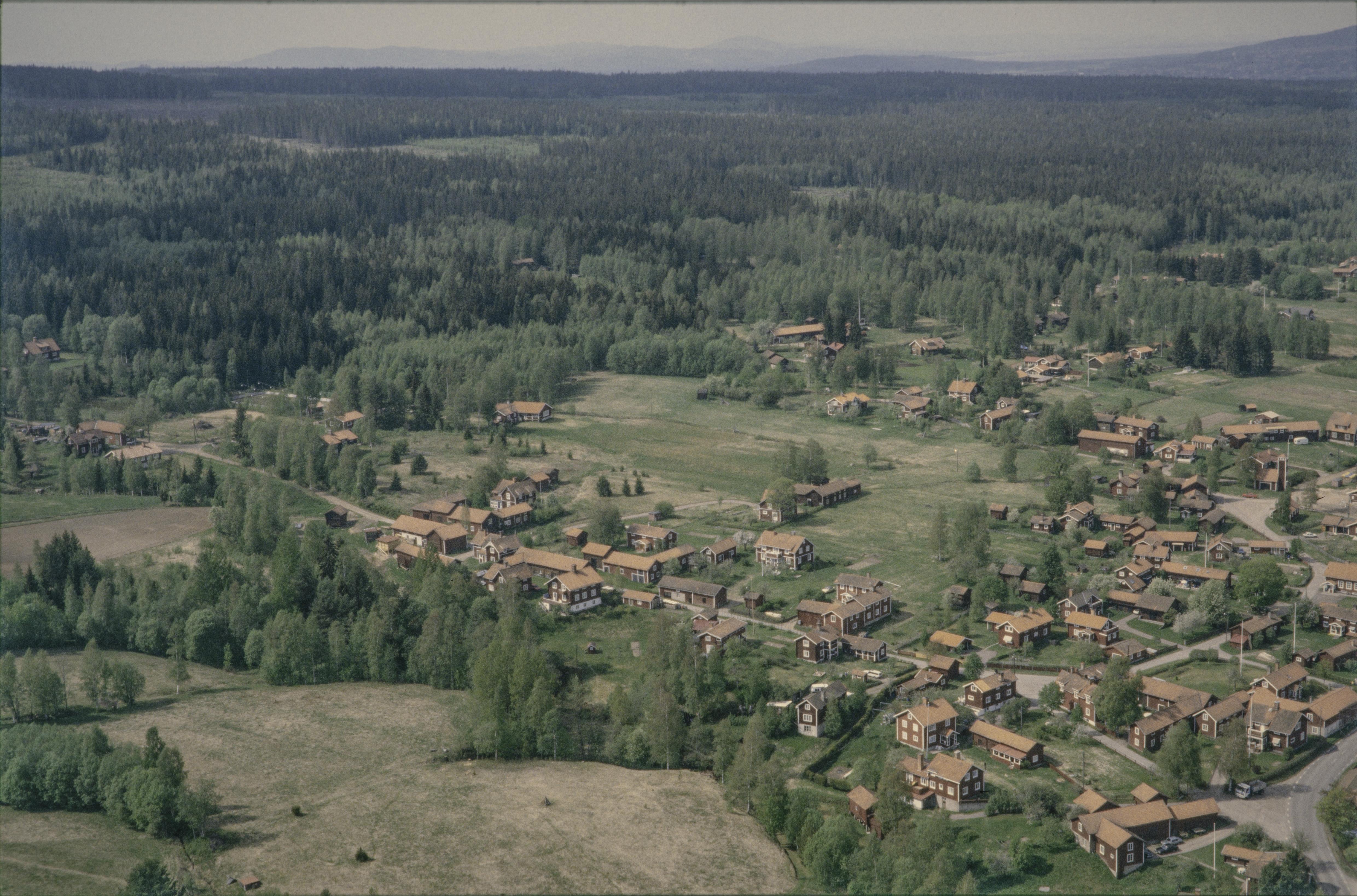 Beskrivning: Västanviks tätort vid Österviken i sjön Siljan. Blästbrukslämningar och småindustriområde RAÄnr Leksand 429:1 vid Båthusbäcken nere till höger. Bilden är tagen mot (väderstreck): NV