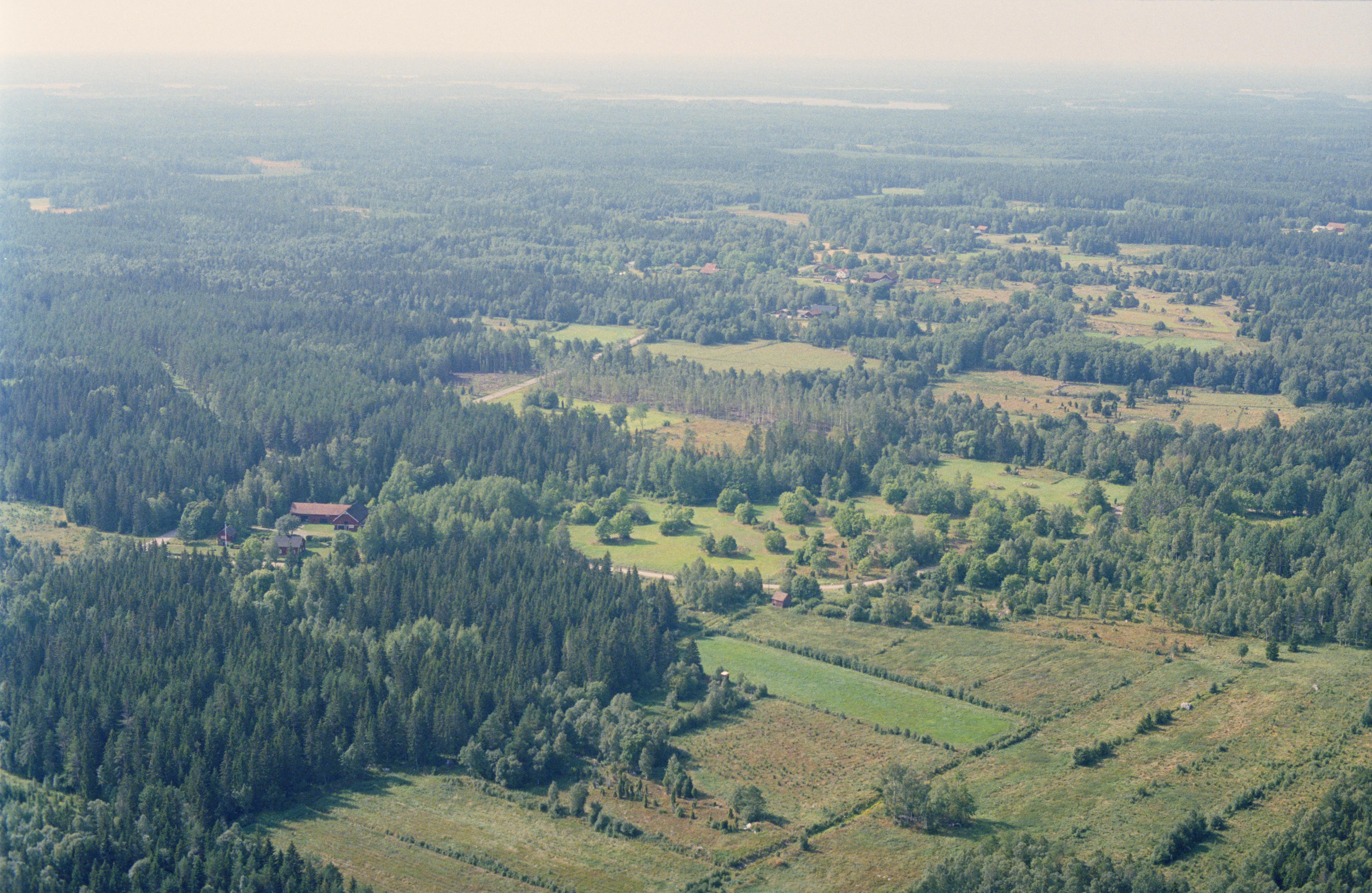 Beskrivning: Lingnåre kulturreservat. Vid bildens mitt boplats RAÄnr Hållnäs 173, gravfält med runristning Hållnäs 121:1 och 122:1, fossila åkrar Hållnäs 171, 176, 429 m.fl. Bilden är tagen mot (väderstreck): SV