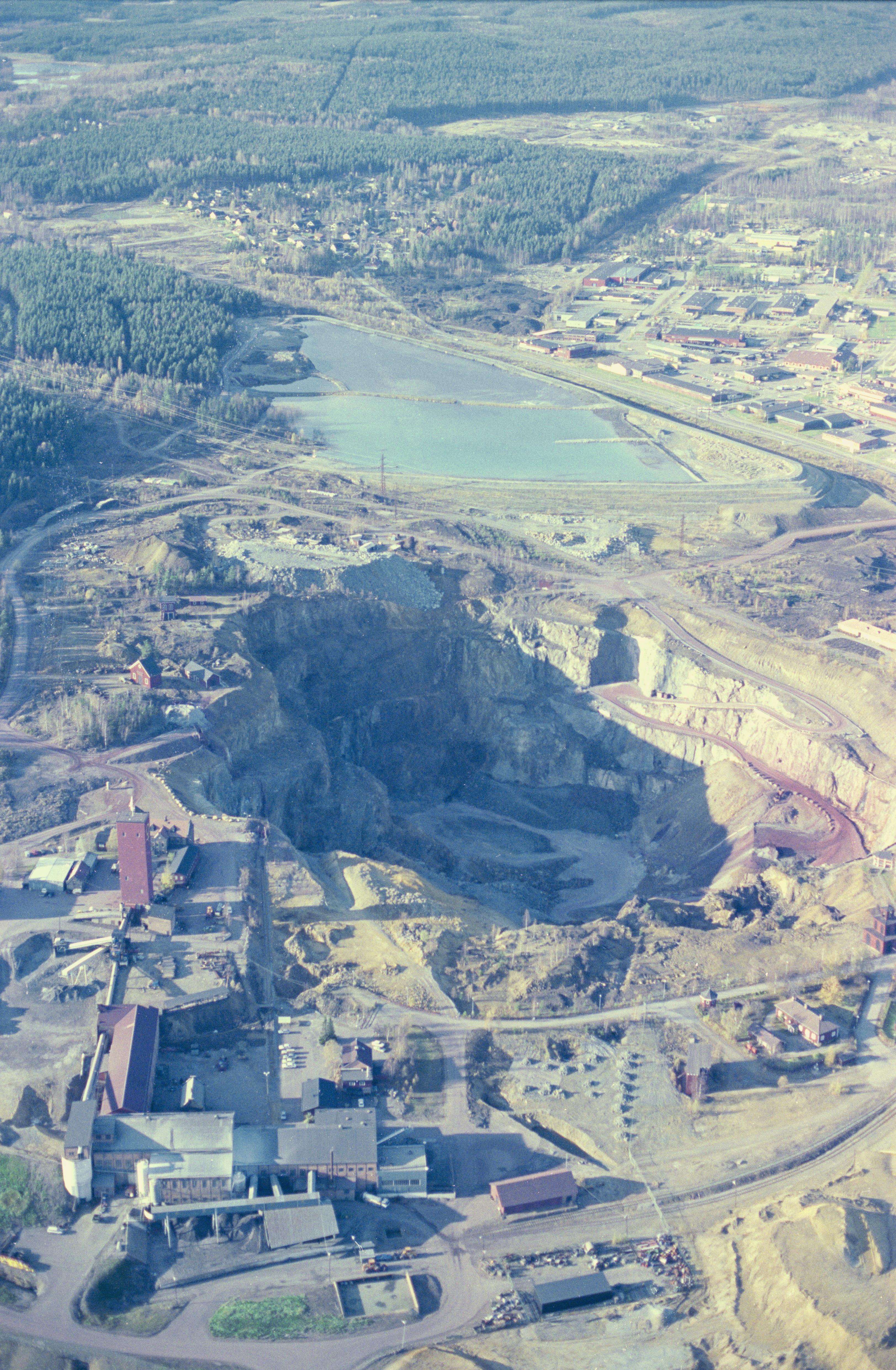 Beskrivning: Anmärkning (övrig): Riksintresse-nr/namn: W15 - Falun. Socken: Falu stad och Stora Kopparberg. Motivering: Industri- och stadsmiljö som speglar en nära tusenårig industriell tradition, kring Sveriges viktigaste tidigindustriella koppargruva som hade avgörande ekonomisk betydelse under landets stormaktstid, jämte tillhörande hyttområden samt residensstadens utveckling under 1800-talets slut och 1900-talets början. (Gruvmiljö, Tidigindustriell miljö). - Uttryck för riksintresset: Området kring gruvan med spår av en medeltida kolonisation och småskaligt jordbruk, dominerande bergsmansgårdar, storslagna slaggvarpar och hyttlämningar samt den medeltida Stora Kopparbergs kyrka, uttryck för gruvans blomstringstid vid(…) Texten i detta fält har förkortats vid migrering till e-arkivet. Se filbilagan extra.xml för fullständig information under note_archivist. Beskrivning: Gruvhålet Stora Stöten RAÄnr Falun 17:1 i Falu koppargruva sydväst i Falu stad. Gamla Bergsdammen i bildens övre del. Bilden är tagen mot (väderstreck): VNV Fotosyfte: Flygbildsdokumentation