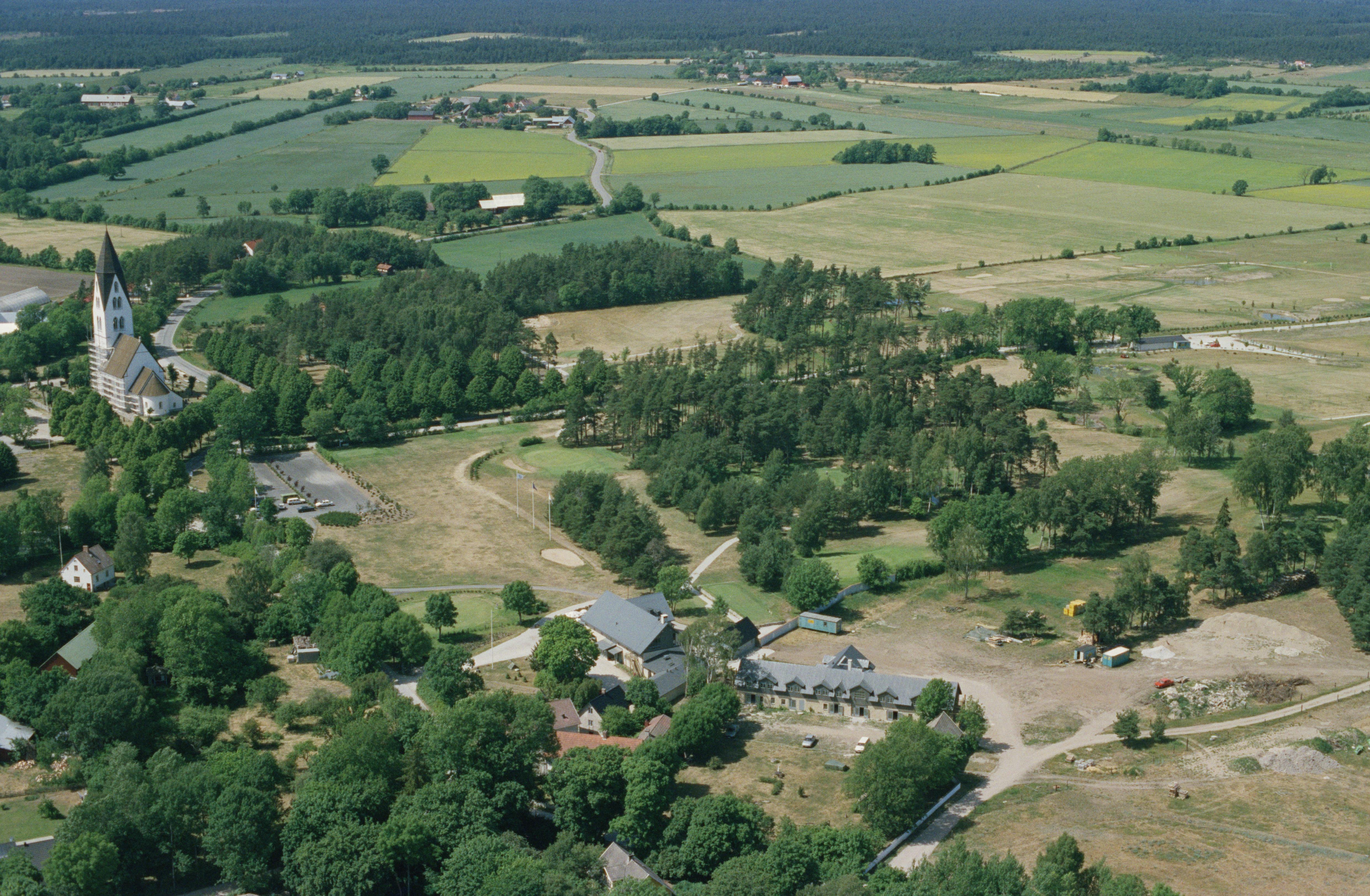 Beskrivning: I bildens nedre del Gumbalde golf och hotel vid Stånga kyrkby. I golfbanan boplats RAÄnr Stånga 55:4 m.fl. Stånga kyrka till vänster om bildens mitt. Bilden är tagen mot (väderstreck): VNV