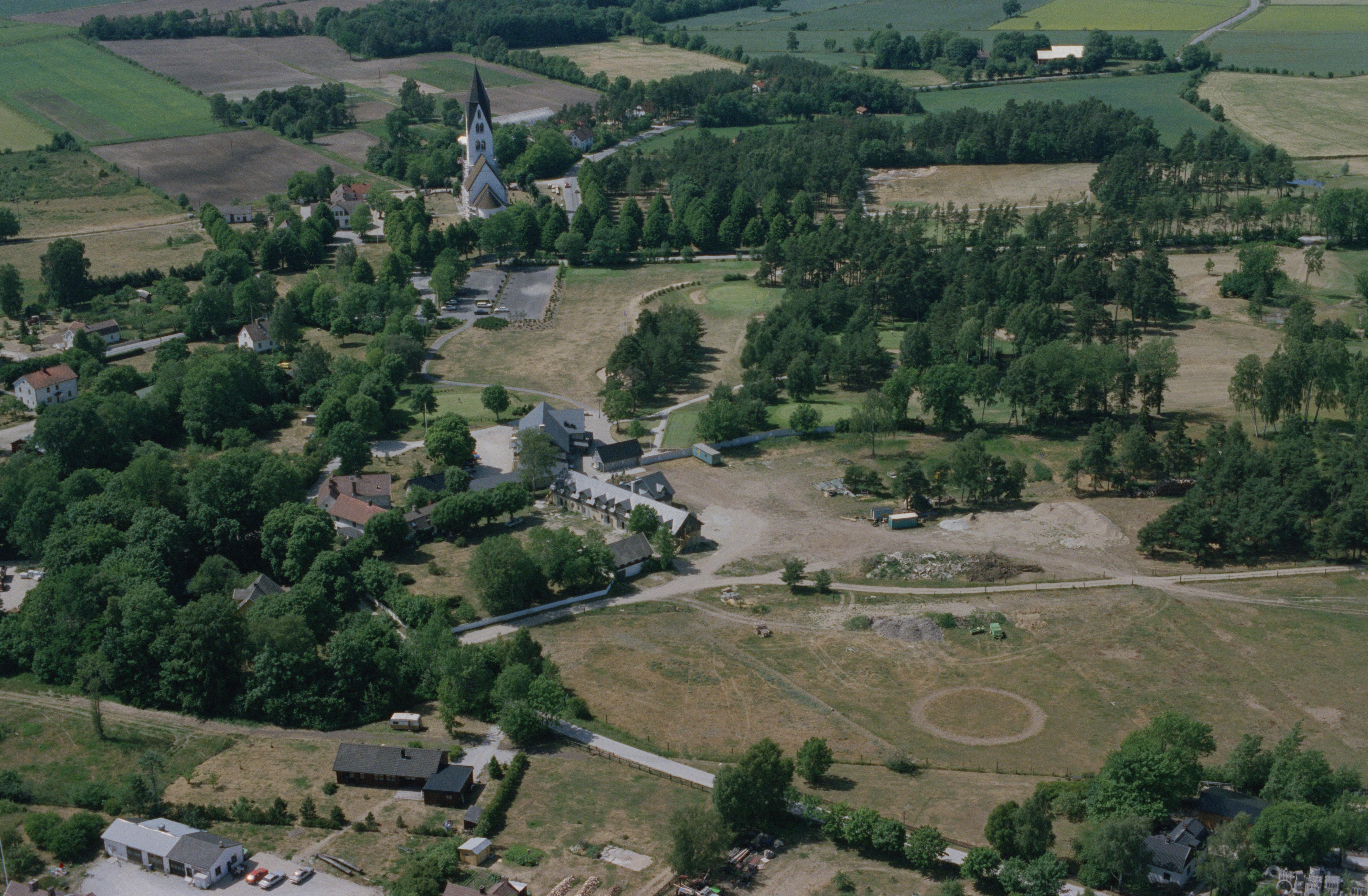 Beskrivning: Gumbalde golf och hotel vid Stånga kyrkby. I golfbanan boplats RAÄnr Stånga 55:4 m.fl. Stånga kyrka till vänster i bildens övre del. Bilden är tagen mot (väderstreck): V