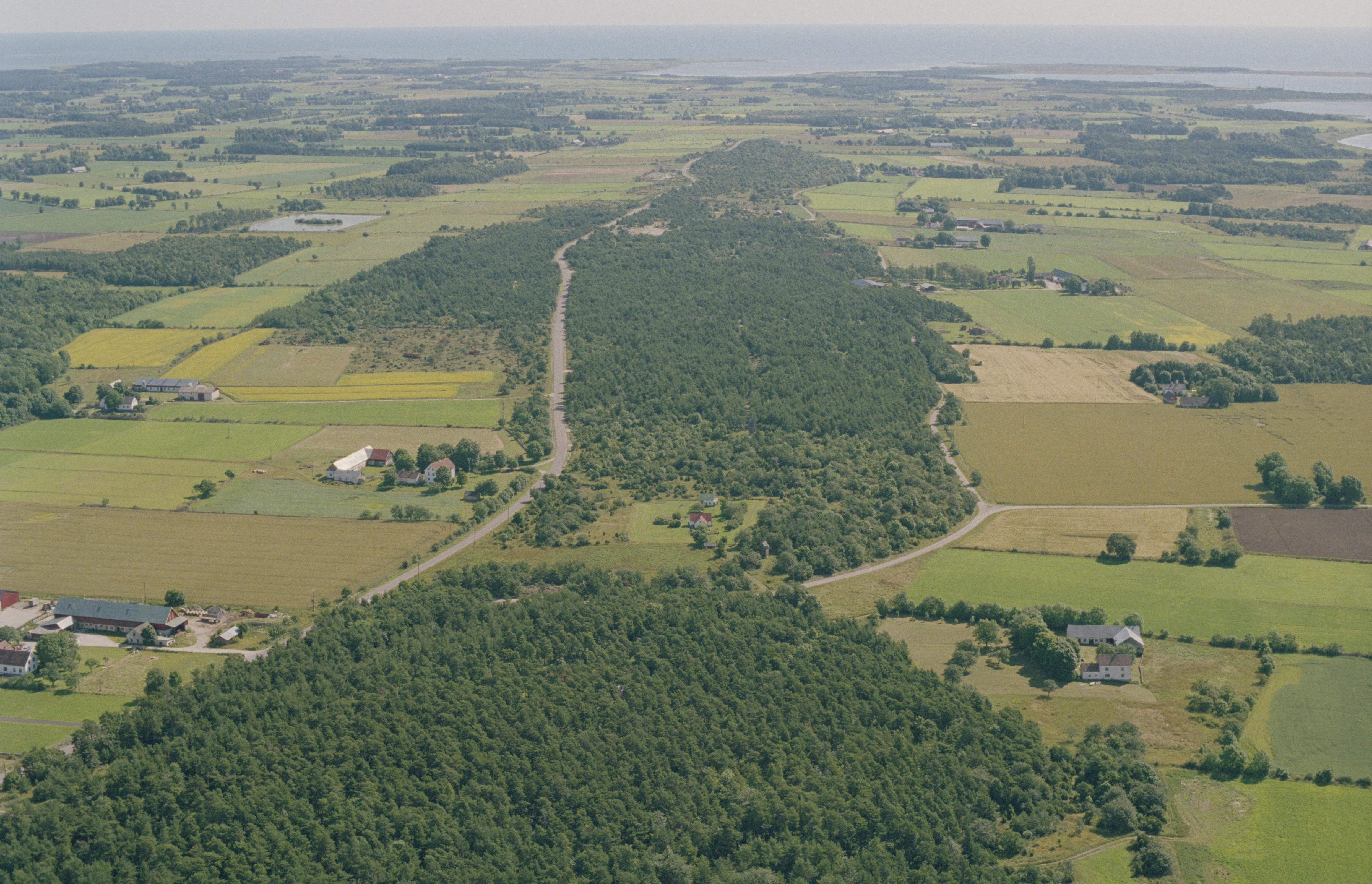 Beskrivning: Ammunde by i bildens nedre del. Under bildens mitt område med stensättningar RAÄnr Burs 31:1-3. Över bildens mitt gränsen mot Närs socken. Närkholmen (skrivs även Närsholmen) i bildens övre del. Bilden är tagen mot (väderstreck): Ö