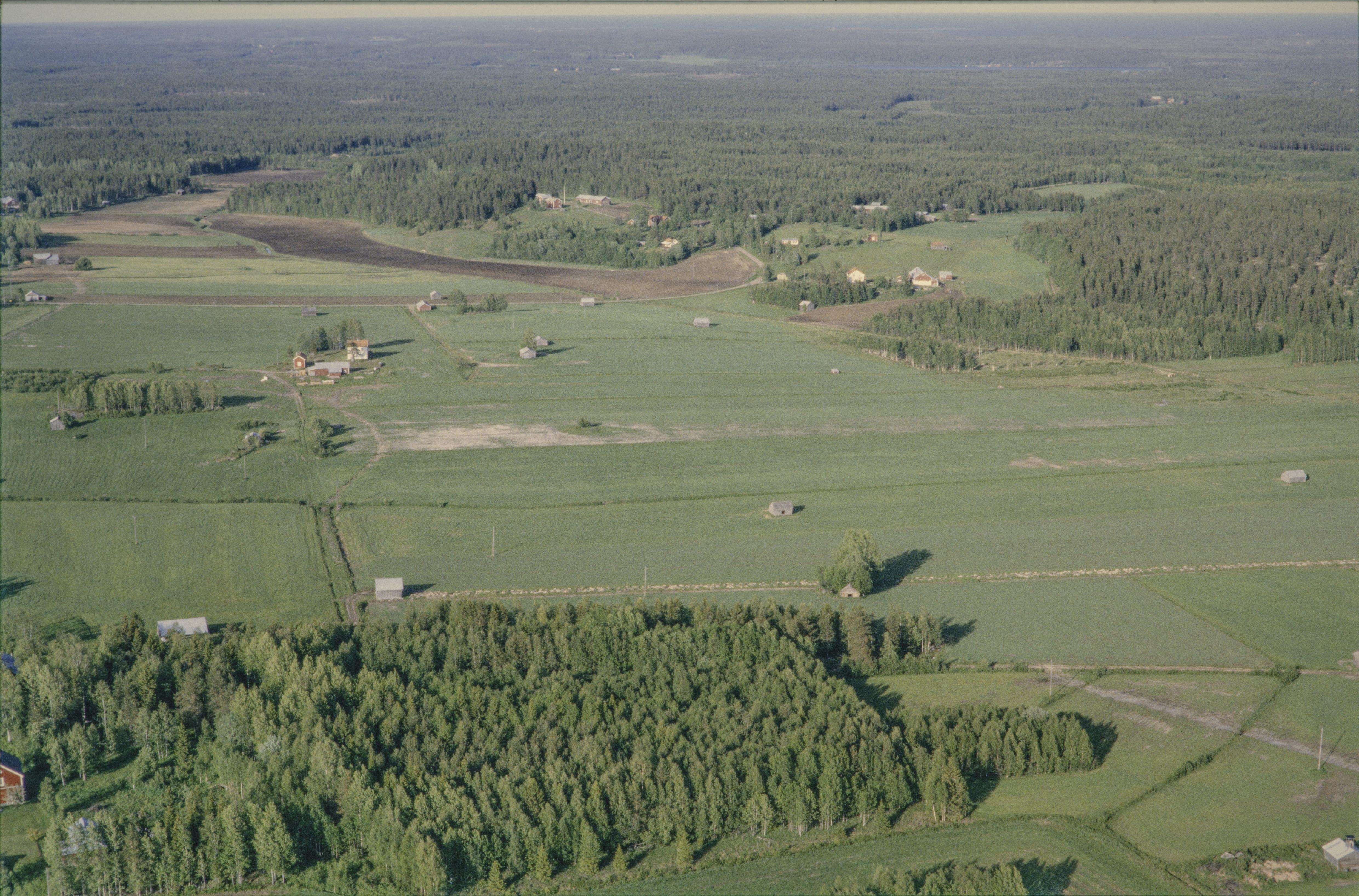 Beskrivning: Grimsmarks by vid Frängsmyrsbäcken. Odlingsmark med ängslador. Vid vägen i bildens övre kant vägmärke RAÄnr Nysätra 250:1. Bilden är tagen mot (väderstreck): ONO