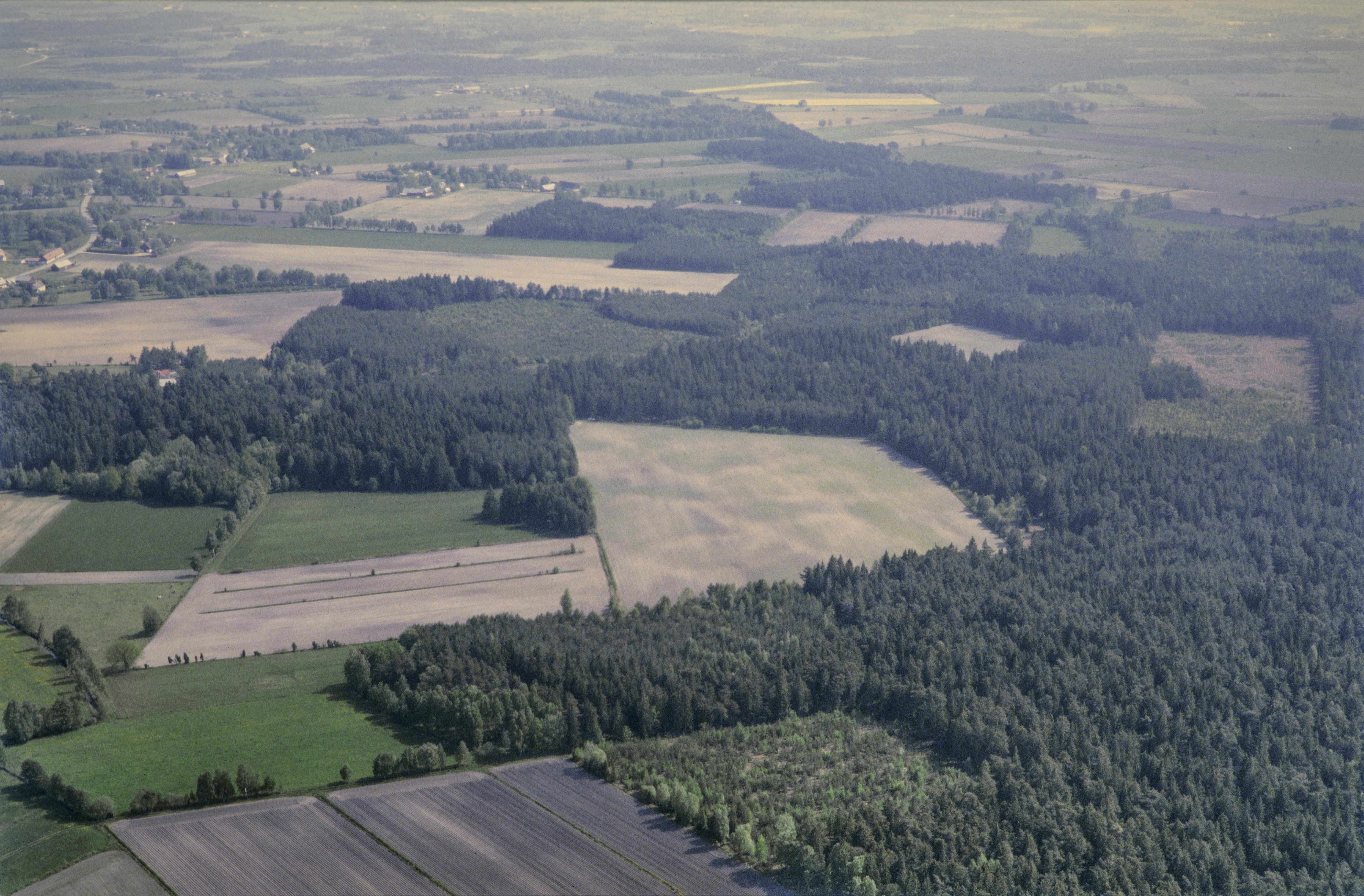 Beskrivning: Fossila åkrar och boplats RAÄnr Lau 106:1-6 m.fl. sydväst i Bönde by. Uppe till vänster områdena Husarve, Liffride, Hemmor m.fl. Bilden är tagen mot (väderstreck): SSO