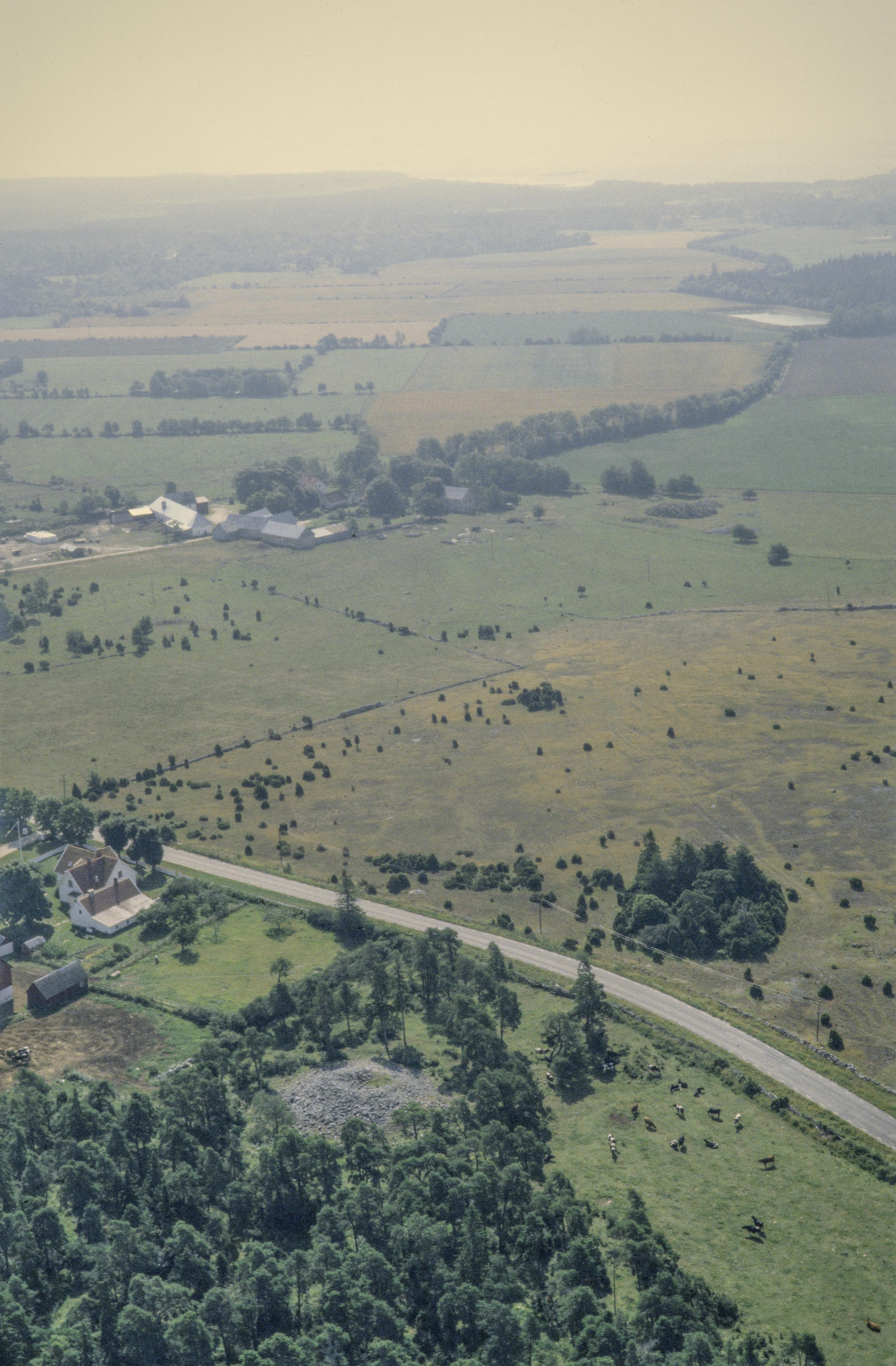 Beskrivning: Området Rangvide, väster om gravfältet Domarlunden. I bildens nedre del gravfält med röse RAÄnr Lärbro 163:1. Vid bildens mitt gravfält Lajkarhajd RAÄnr Lärbro 164:1 vid Häggvide gård. Bilden är tagen mot (väderstreck): S
