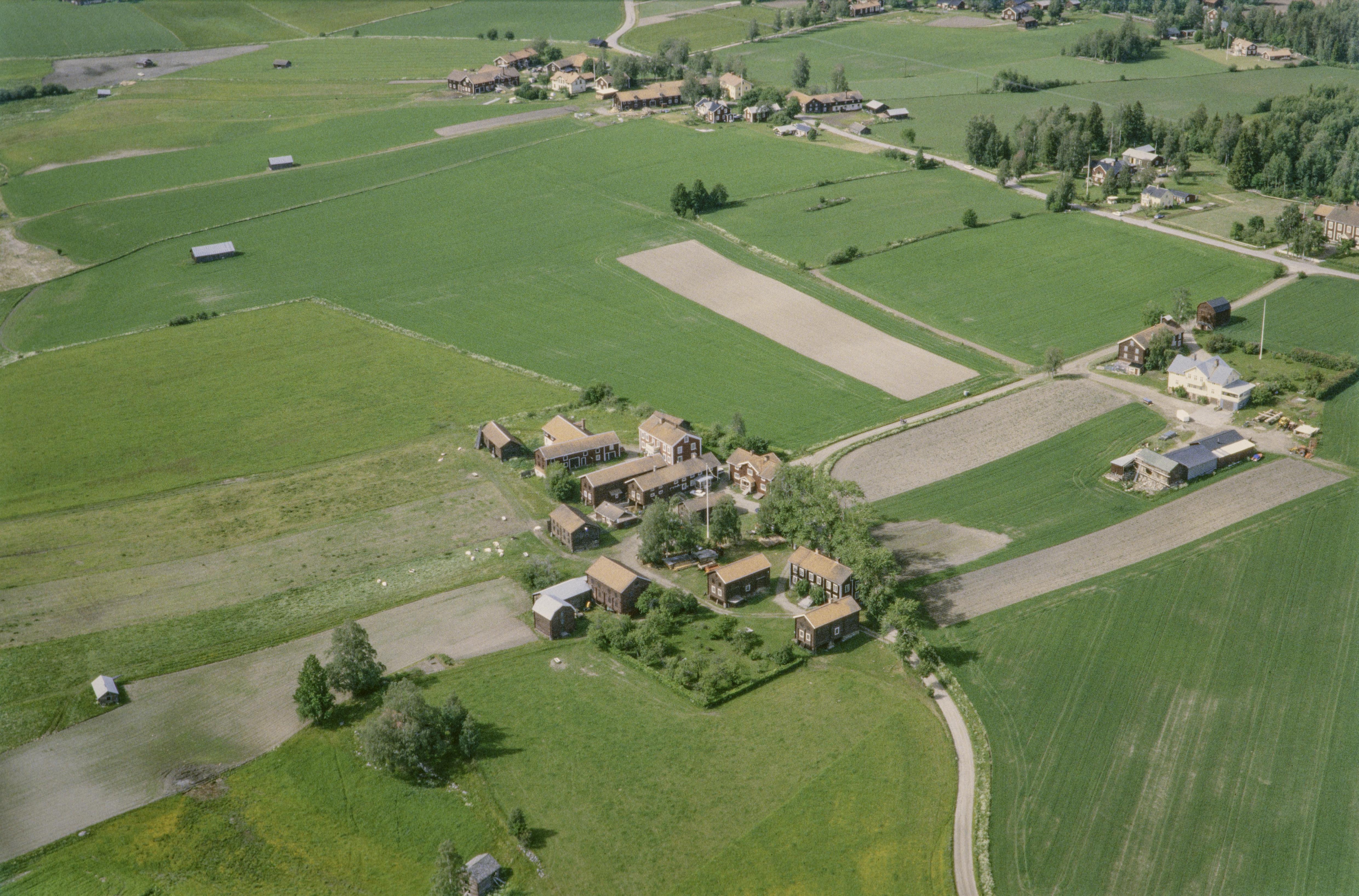 Beskrivning: Västerängs by med fyra hälsingegårdar. Bykärnan har tre gårdar: Ol-Ers, Erst-Mickels och Schäffners och norr om bykärnan Bommens (till höger över bildens mitt). Byn blev kulturreservat i 2002. Bilden är tagen mot (väderstreck): NV