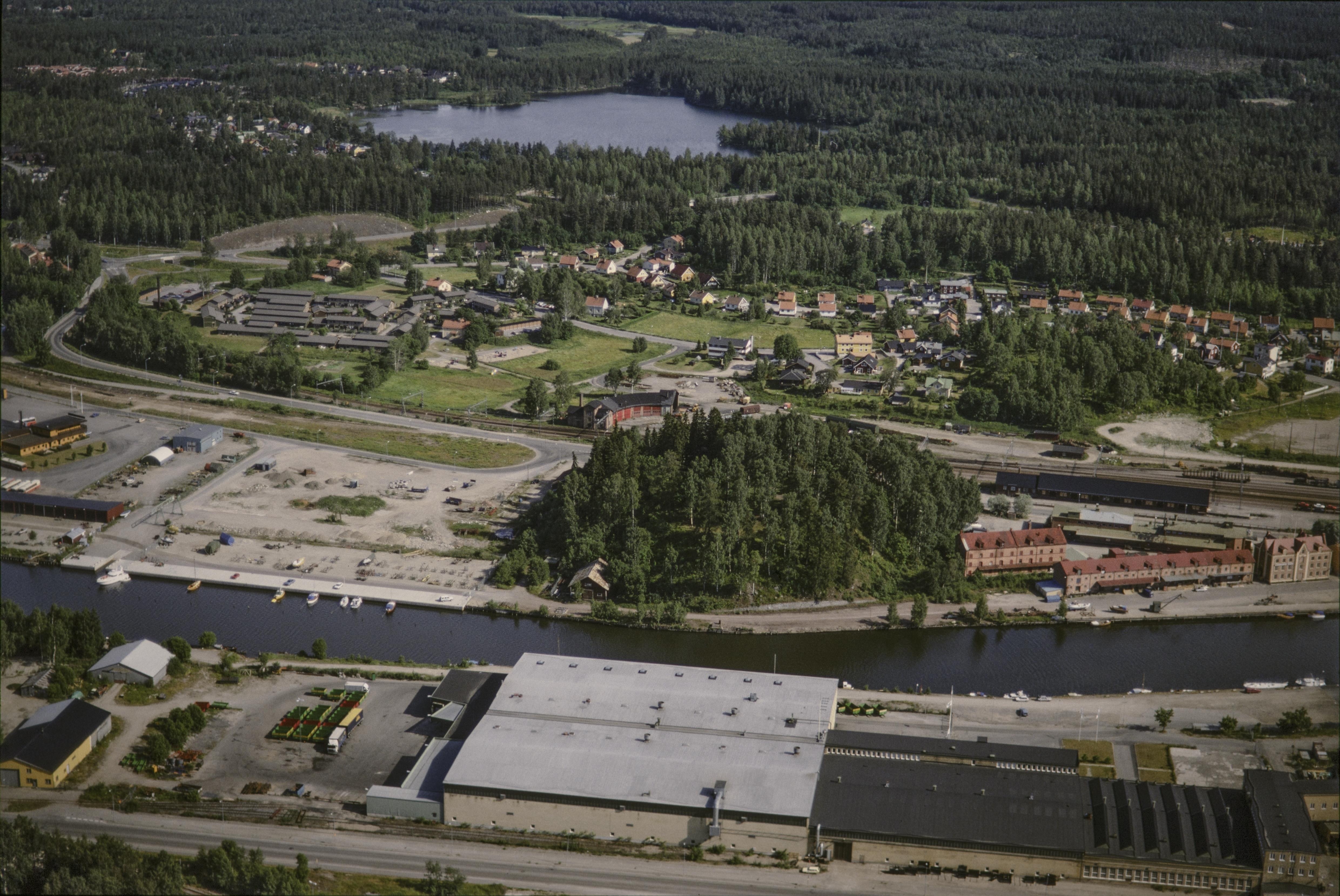 Beskrivning: Söderhamns tätort vid Söderhamnsfjärden. Runt trädklungan vid bildens mitt området Faxeholmen med bogruin Faxehus RAÄnr Söderhamn 4:1. Bilden är tagen mot (väderstreck): SO