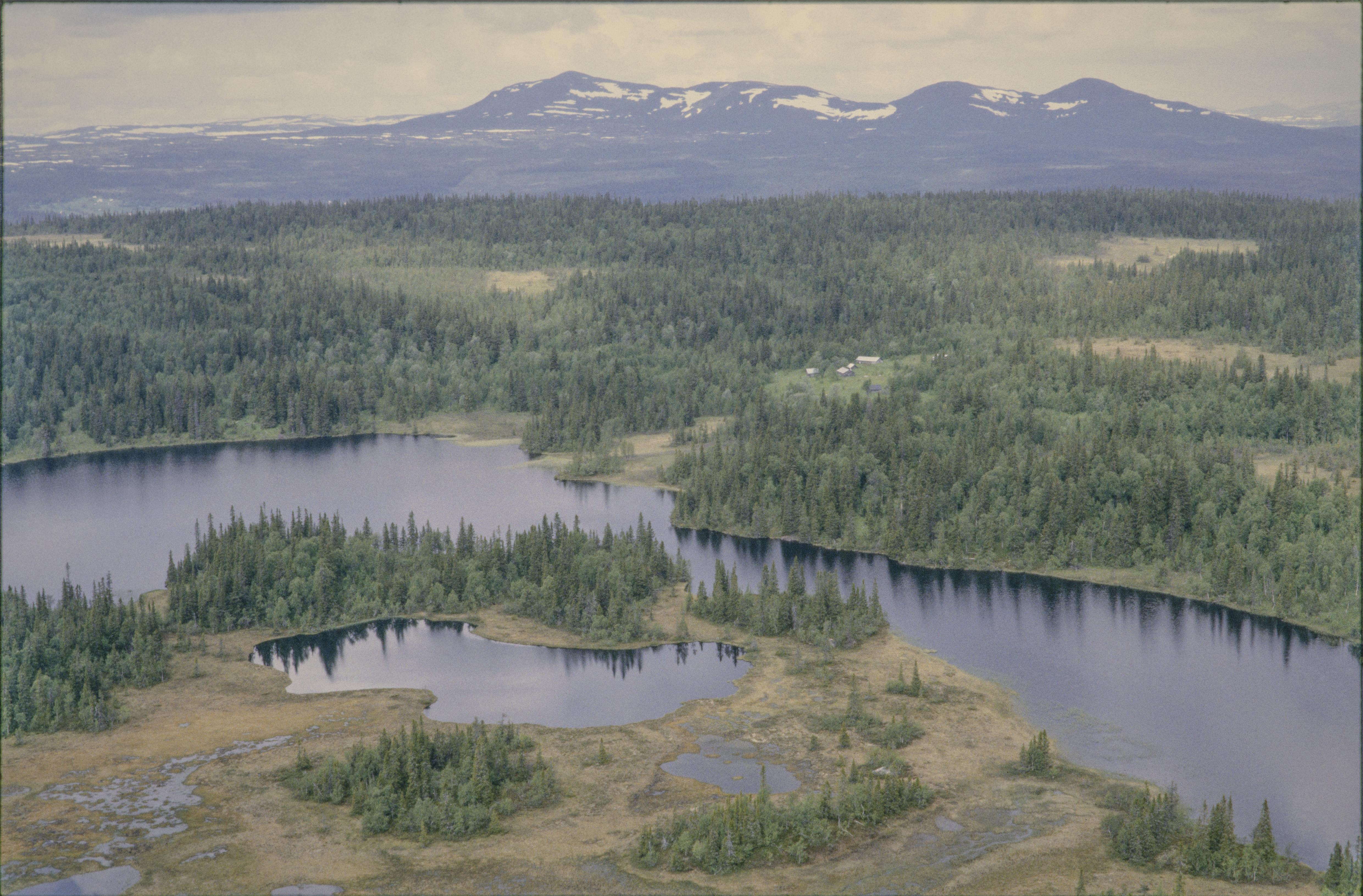 Beskrivning: Sjön Höktjärnen i fjällområdet nordväst i socknet Föllinge, vid gränsen mot socknet Hotagen (i bildens övre del). Till höger om bildens mitt fäbodområdet Erik-Persabodarna. Bilden är tagen mot (väderstreck): NV