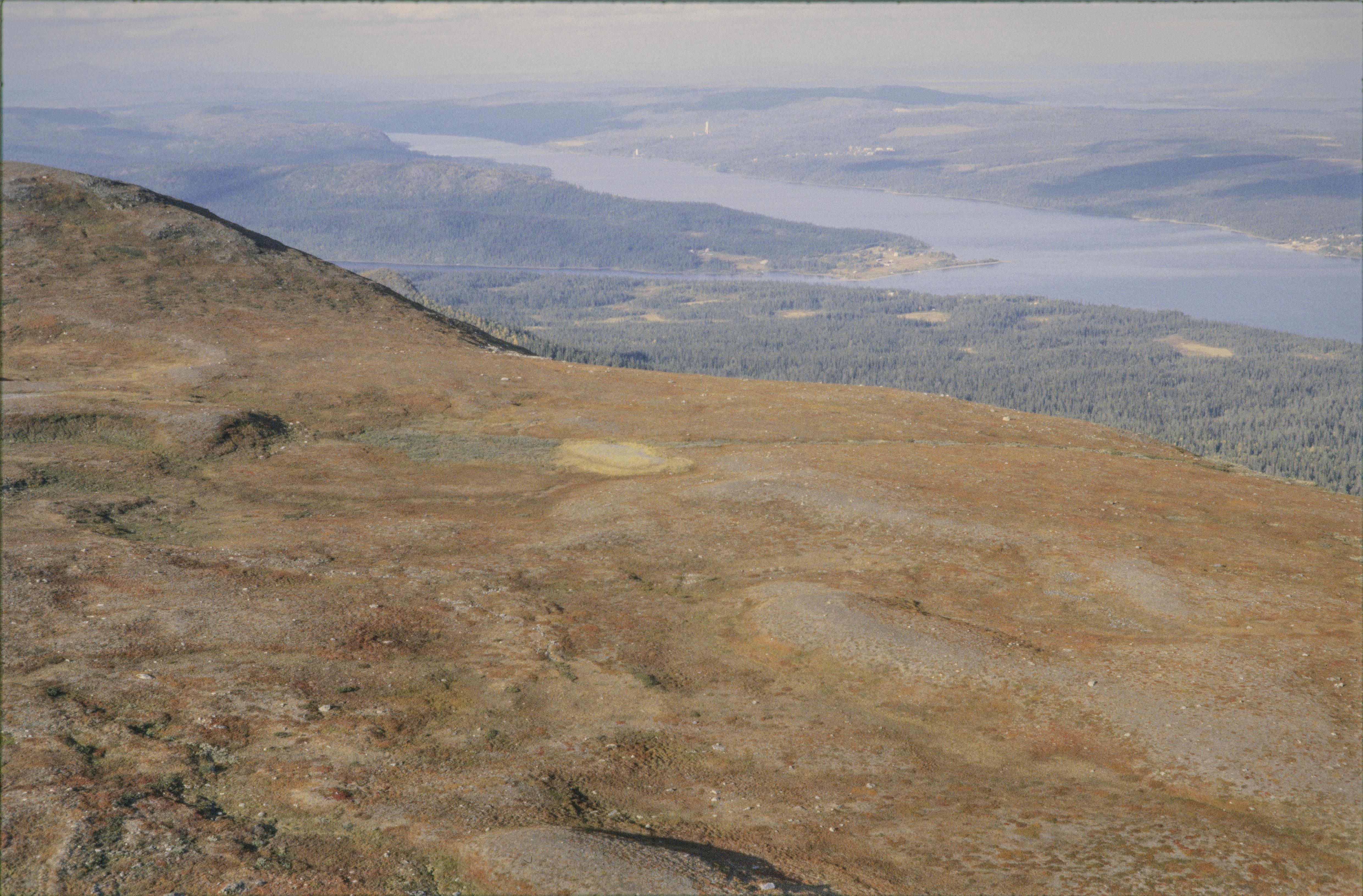 Beskrivning: Fjällområdet Niepsurt (Niebsurte). I bildens övre del Kramaviken, Västra Laisvall, Laisvallby och orten Laisvall (Lájsogädde) vid Laisälven (Lájsso). Vid Västra Laisvall i bildens mitt boplats RAÄnr Arjeplog 846:1, 902:1 m.fl. Bilden är tagen mot (väderstreck): NO