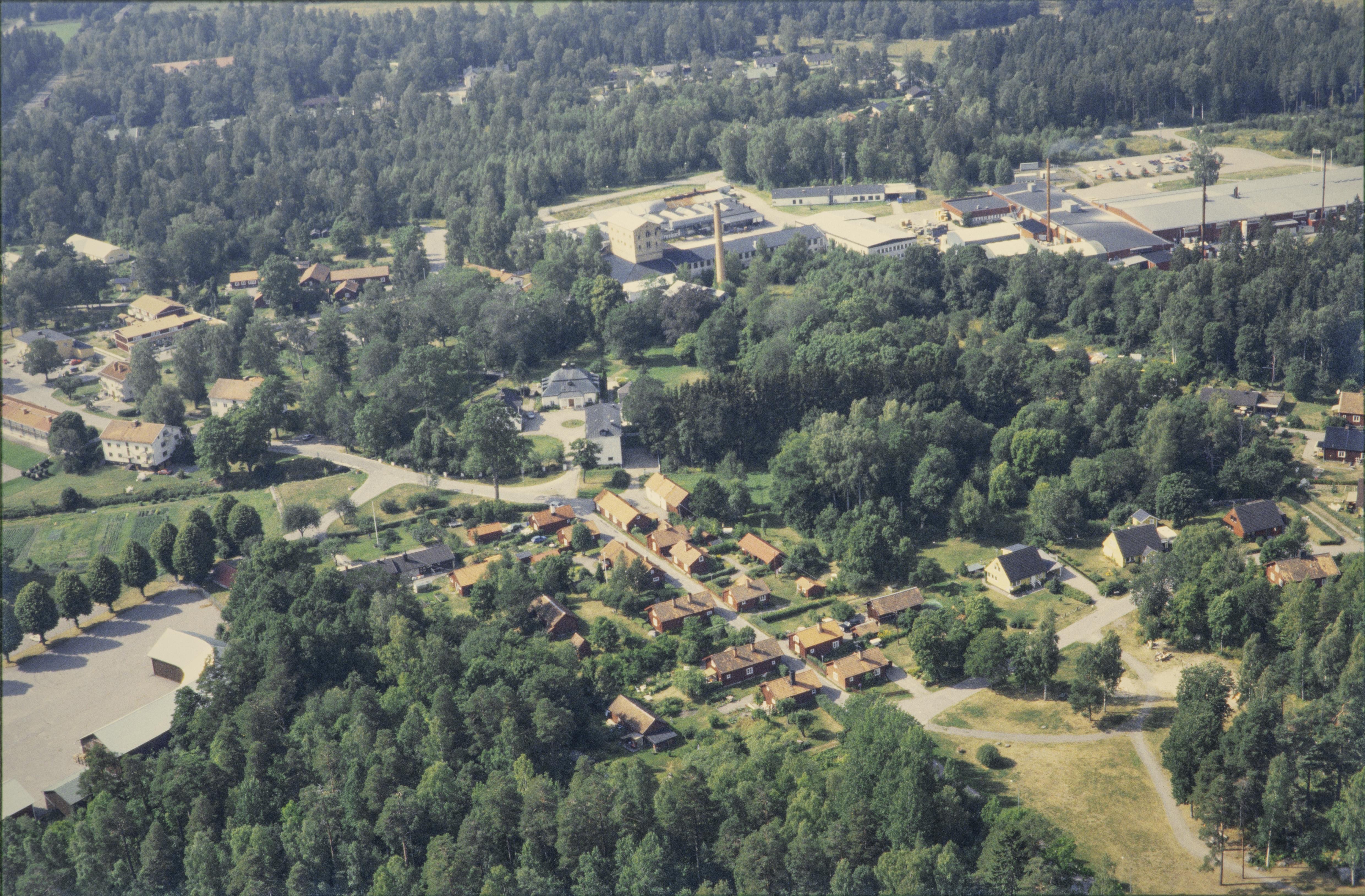 Beskrivning: Tobo bruk RAÄnr Tegelsmora 198:1-4 vid Toboån. Tobo herrgård vid bildens mitt. Bilden är tagen mot (väderstreck): SV