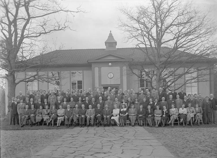 Text till bilden:"Gruppbild på gårdsplan framför den gamla aulan. V.U.S. Kongressmedlemmar".