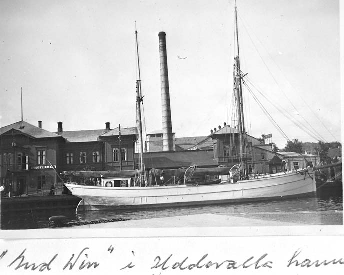 Text på kortet: "Gud Win" i Uddevalla hamn".