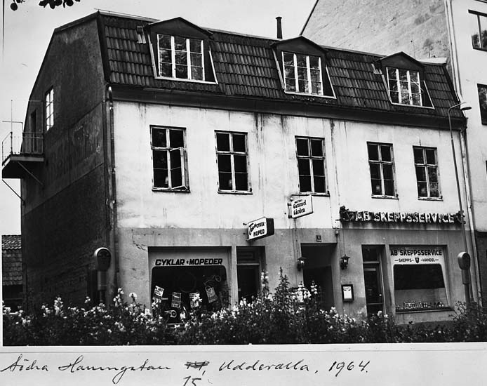 Text på kortet: "Södra hamngatan 15, Uddevalla, 1964".