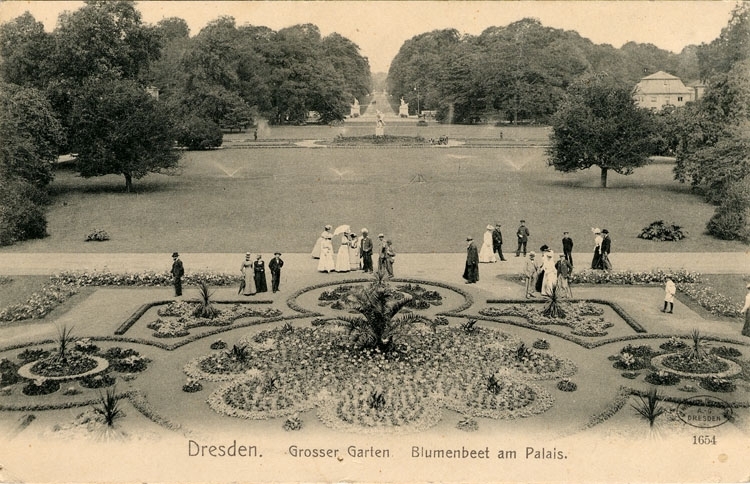 Tryckt text på bilden: "Dresden. Grosser Garten Blumenbeet am Palis".
