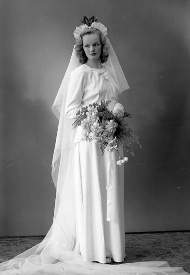Enligt fotografens journal nr 7 1944-1950: "Gustafsson, Herr Thure Stenlyckan Ödsmål bruden".